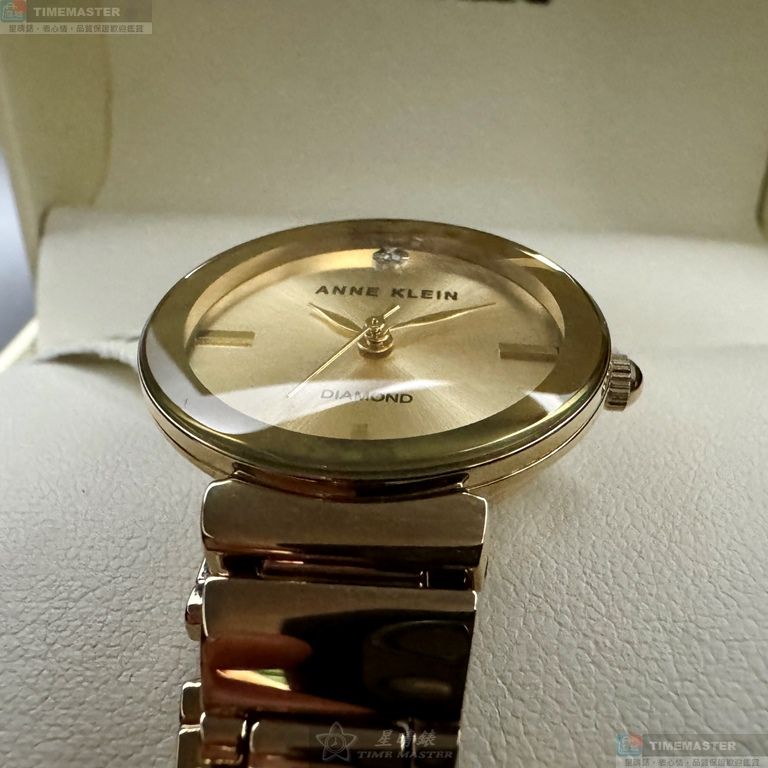 ANNE KLEIN手錶,編號AN00155,28mm金色圓形合金錶殼,金色簡約, 中三針顯示錶面,金色精鋼錶帶款