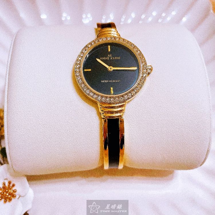 AnneKlein手錶,編號AN00514,28mm金色圓形精鋼錶殼,黑色簡約錶面,深黑色, 金色精鋼錶帶款,精美絕倫!