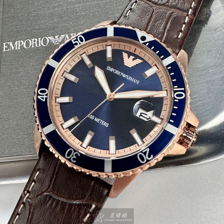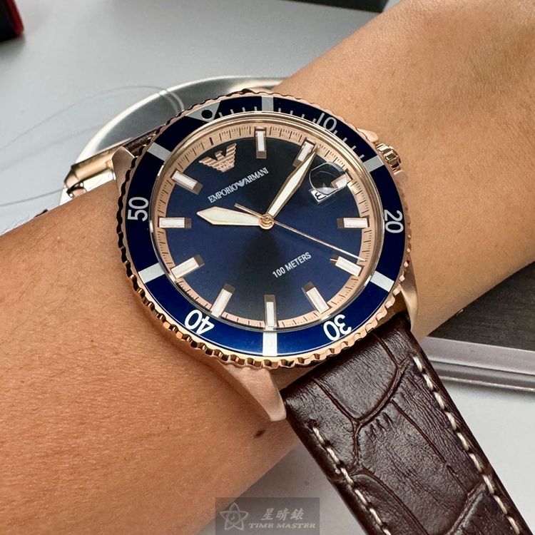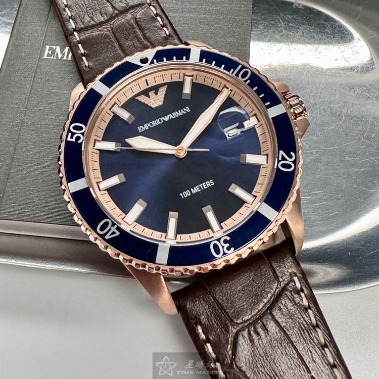 ARMANI手錶,編號AR00047,42mm玫瑰金錶殼,咖啡色錶帶款-[置頂推薦]