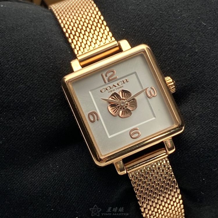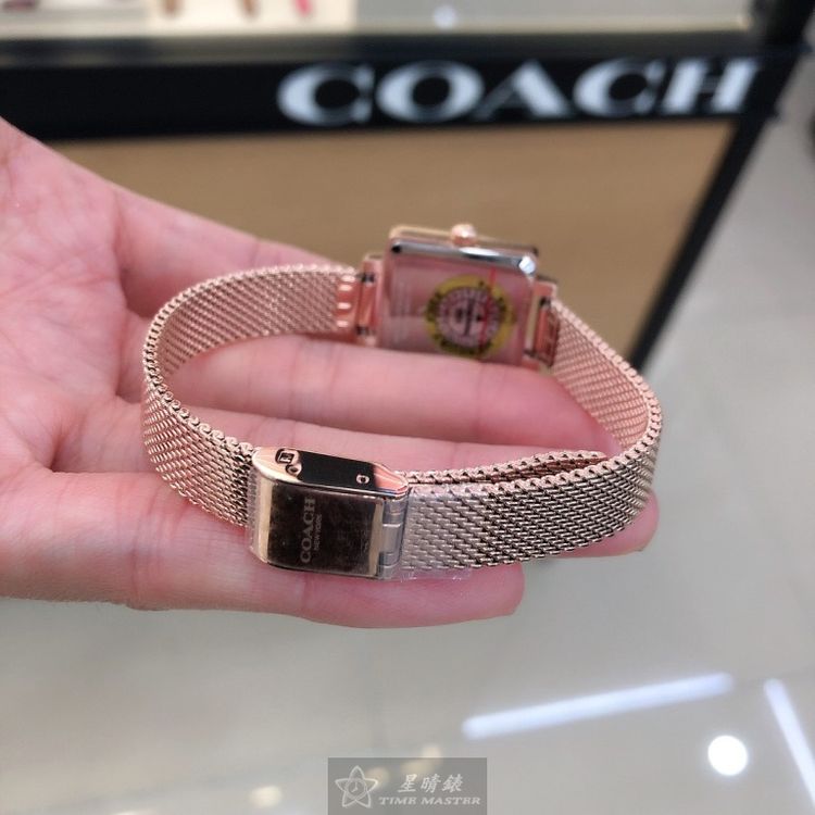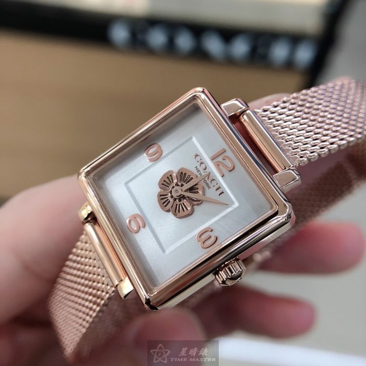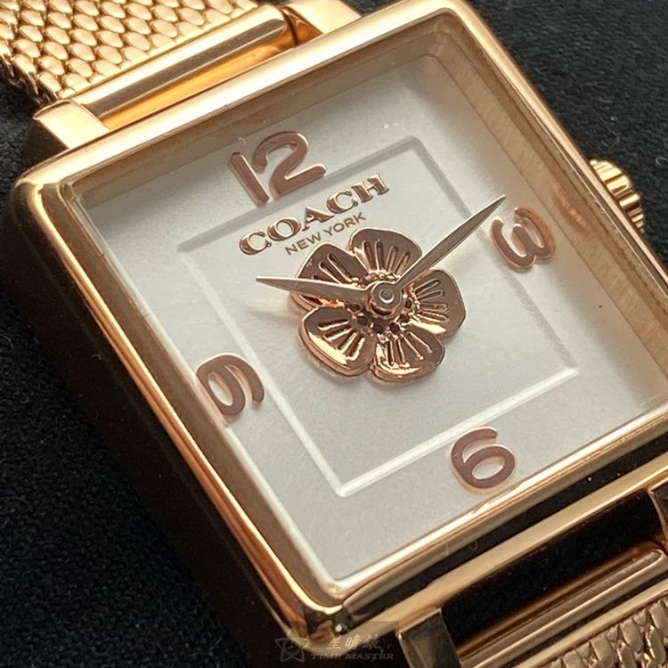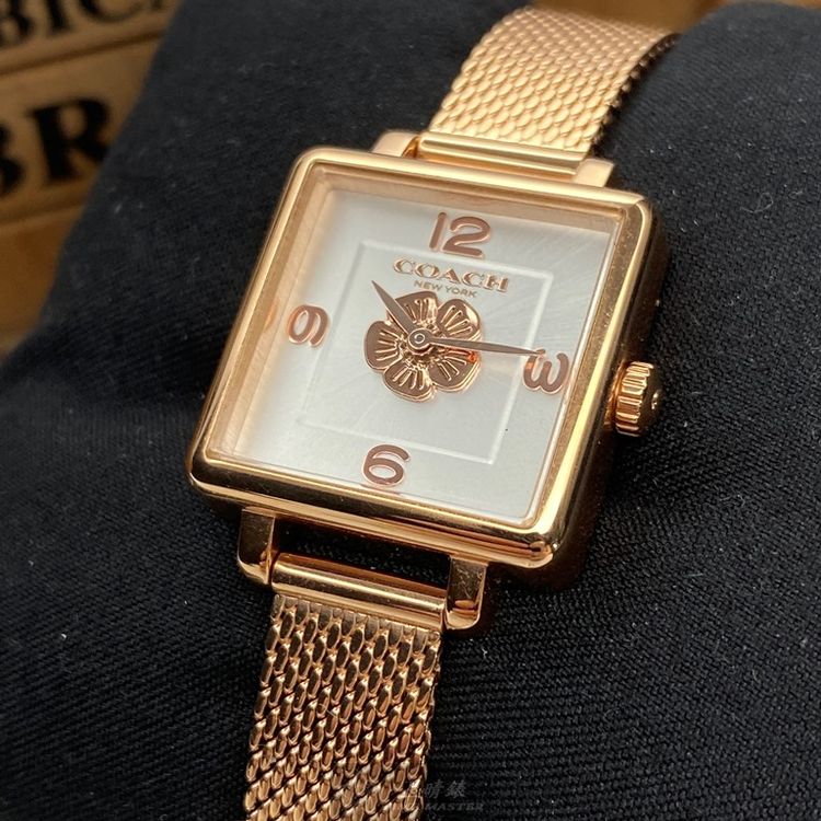 COACH手錶,編號CH00040,22mm玫瑰金方形精鋼錶殼,白色簡約錶面,玫瑰金色米蘭錶帶款,微時尚輕奢