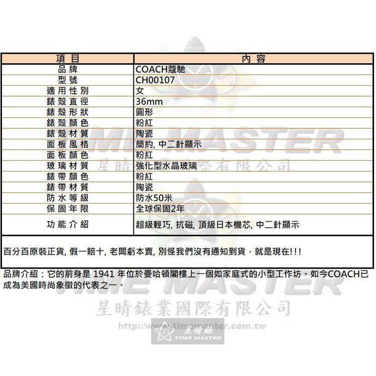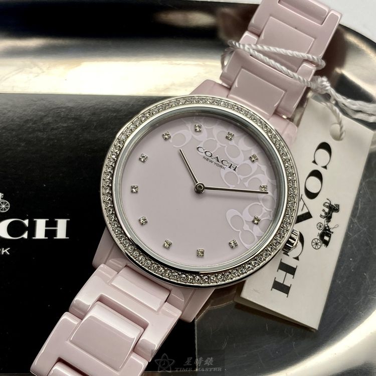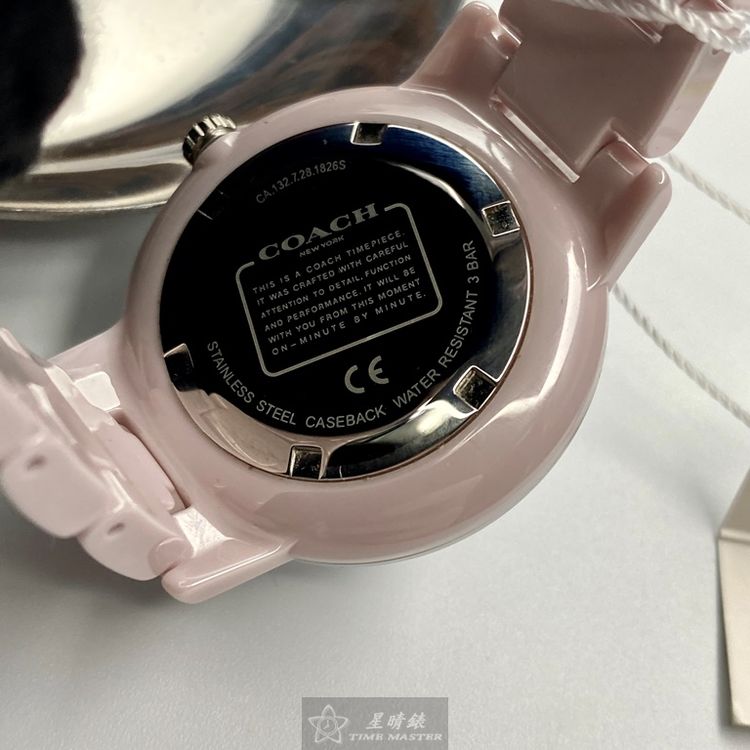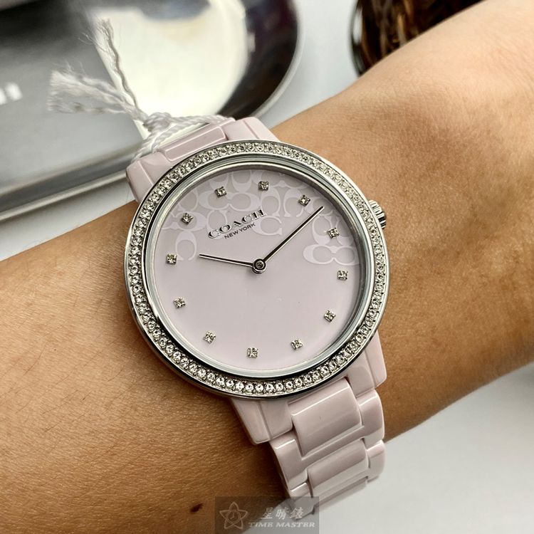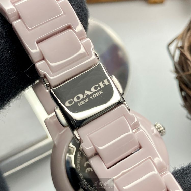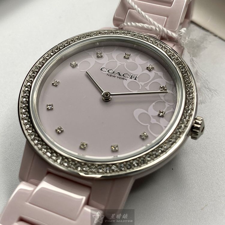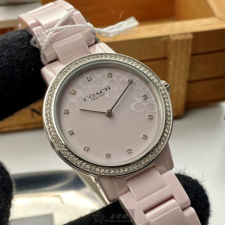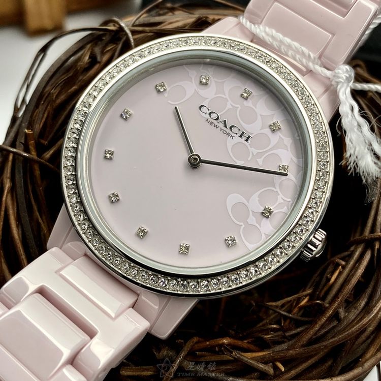 COACH手錶,編號CH00107,36mm粉紅圓形陶瓷錶殼,粉紅簡約, 中二針顯示錶面,粉紅陶瓷錶帶款