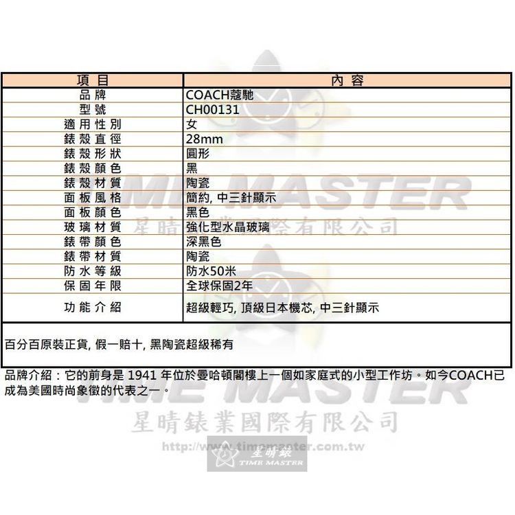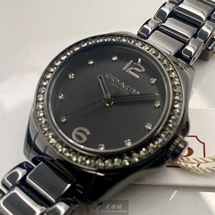 COACH手錶,編號CH00131,28mm黑圓形陶瓷錶殼,黑色簡約, 中三針顯示錶面,深黑色陶瓷錶帶款