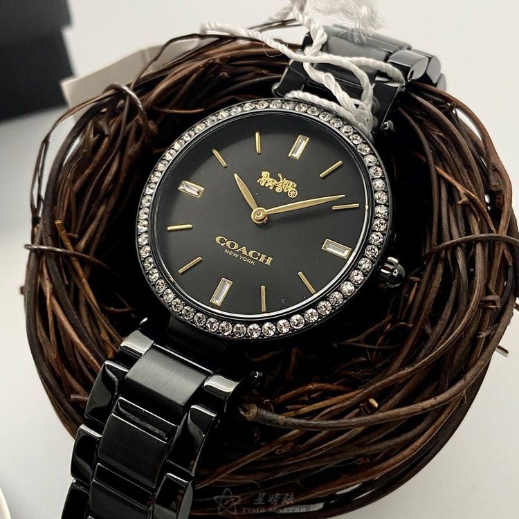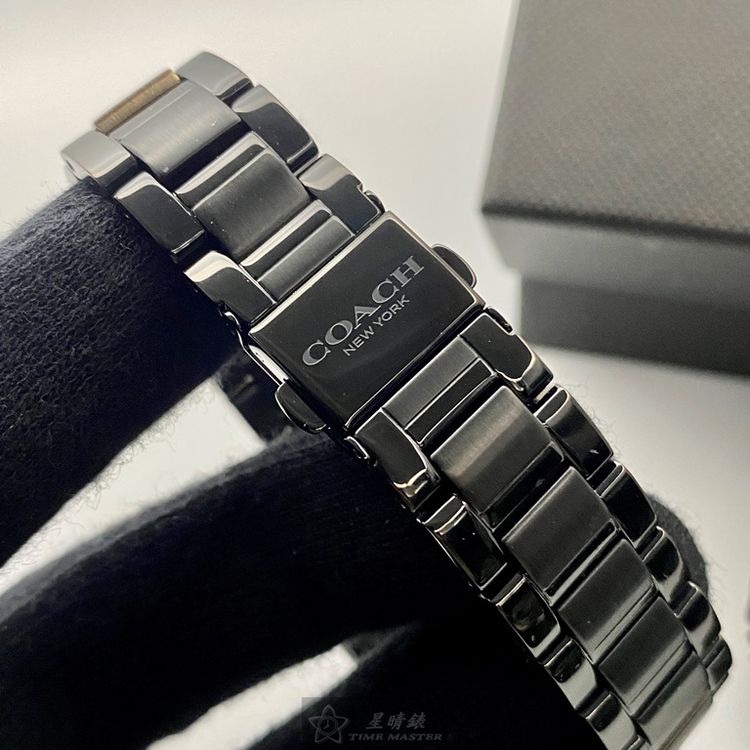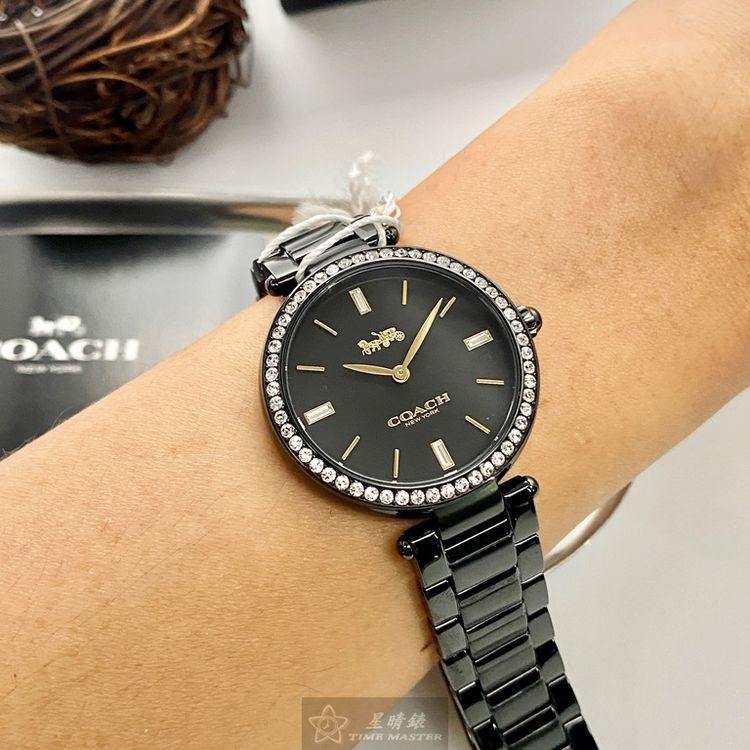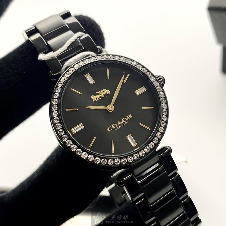 COACH手錶,編號CH00132,34mm銀圓形精鋼錶殼,黑色簡約, 中二針顯示錶面,深黑色精鋼錶帶款