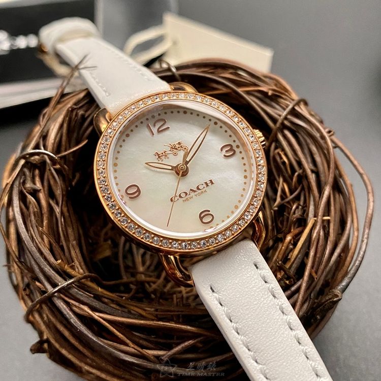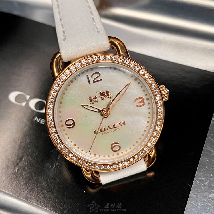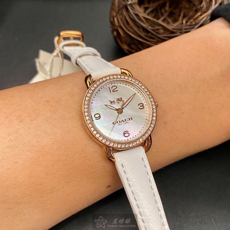 COACH手錶,編號CH00148,28mm玫瑰金圓形精鋼錶殼,貝母簡約, 中三針顯示, 貝母錶面,白真皮皮革錶帶款