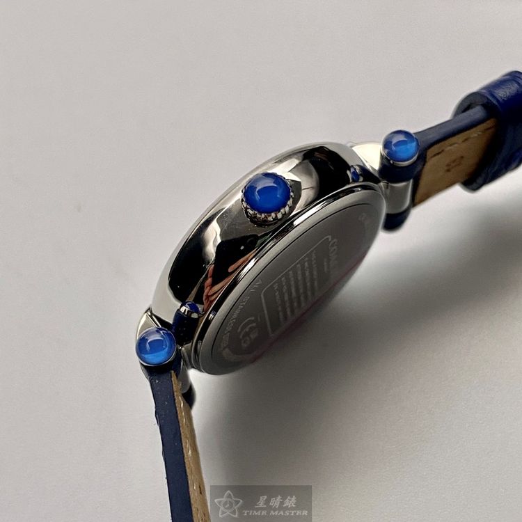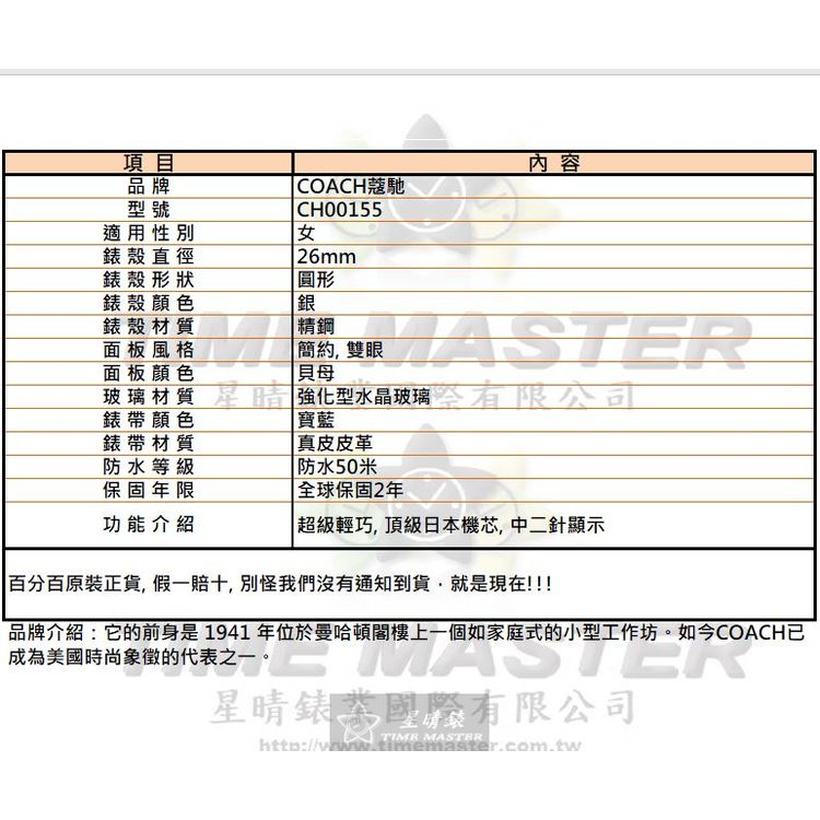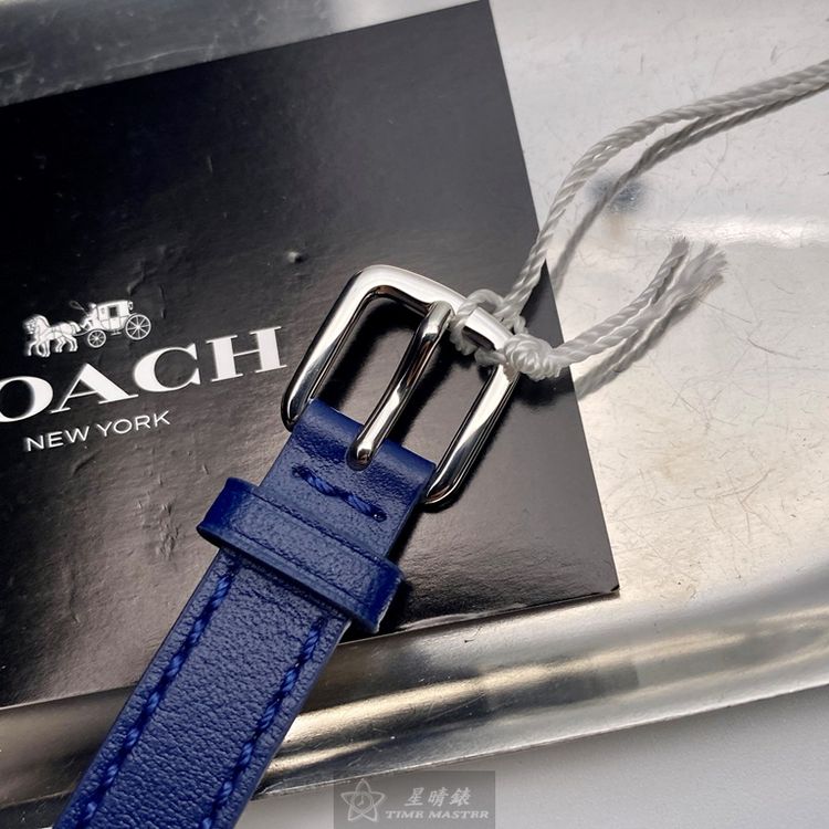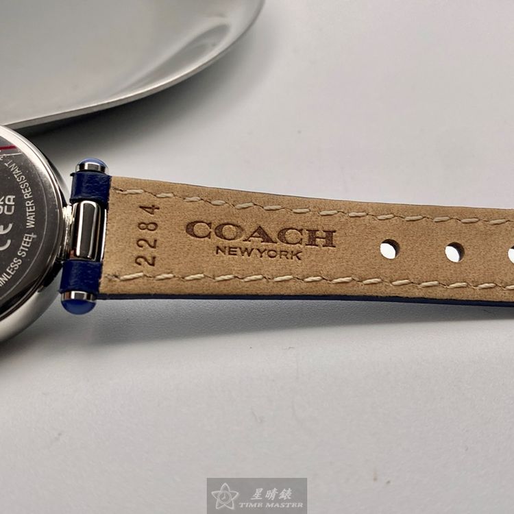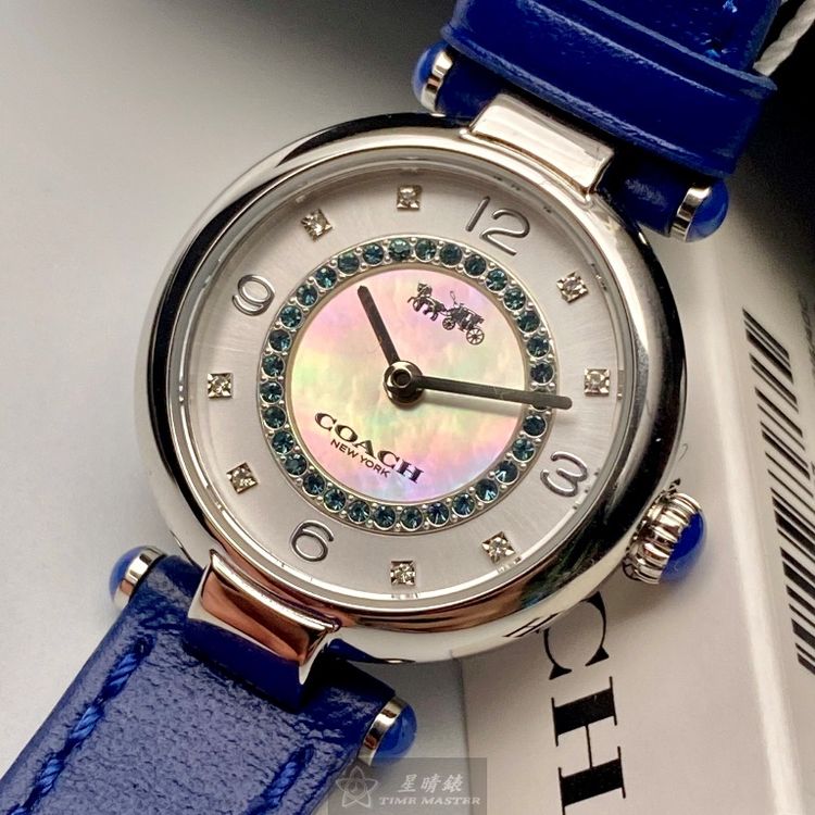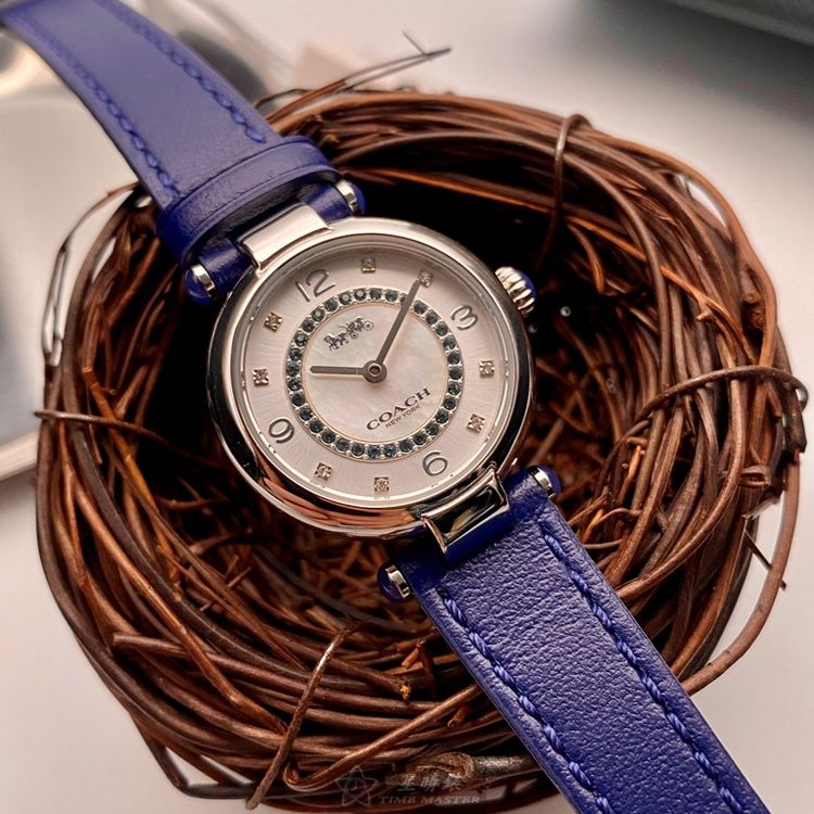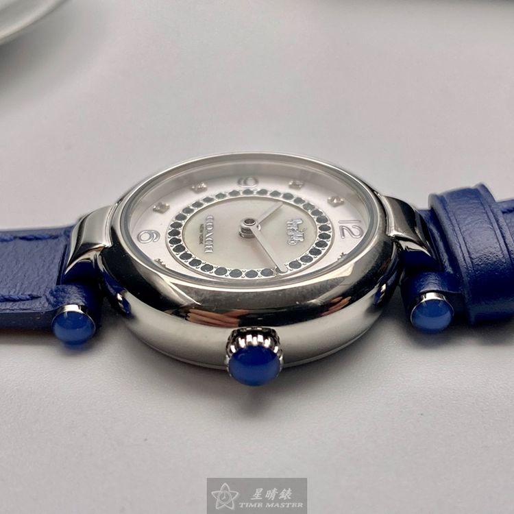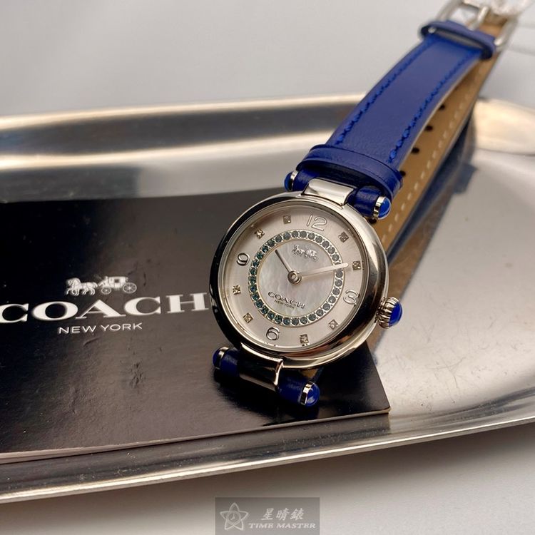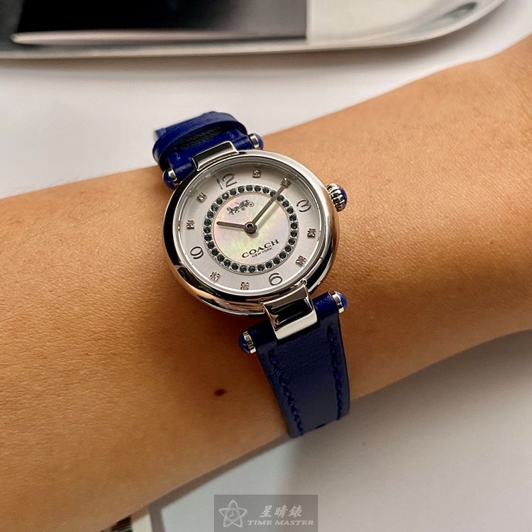 COACH手錶,編號CH00155,26mm銀圓形精鋼錶殼,貝母簡約, 雙眼錶面,寶藍真皮皮革錶帶款