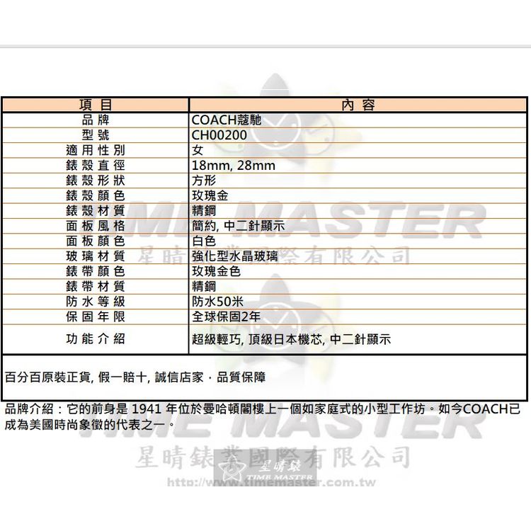 COACH手錶,編號CH00200,18mm, 28mm玫瑰金錶殼,玫瑰金色錶帶款-[置頂推薦]