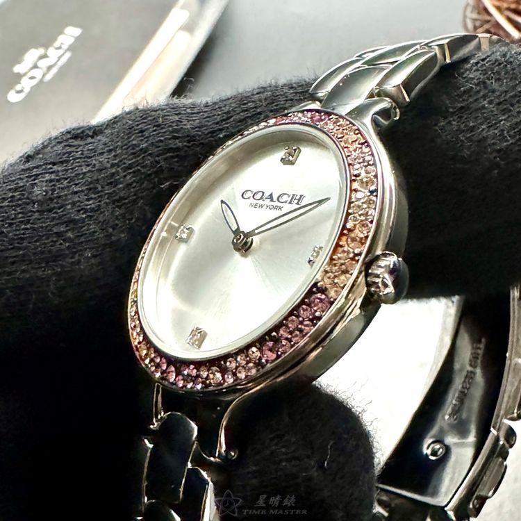 COACH手錶,編號CH00203,32mm銀圓形精鋼錶殼,銀白色簡約, 中二針顯示錶面,銀色精鋼錶帶款,婚禮必備!