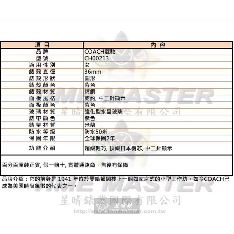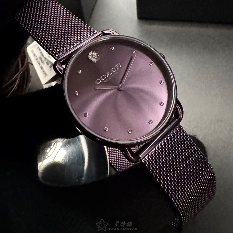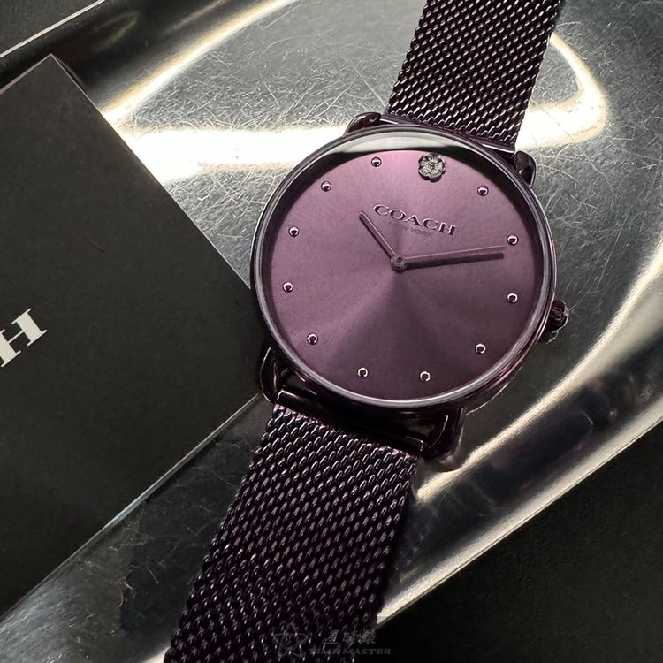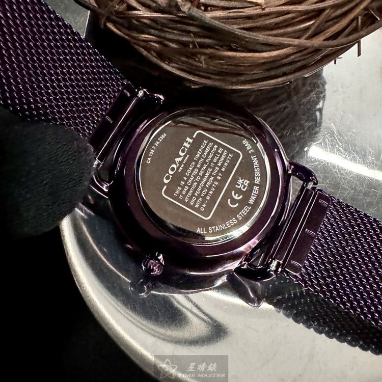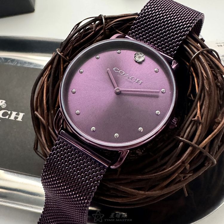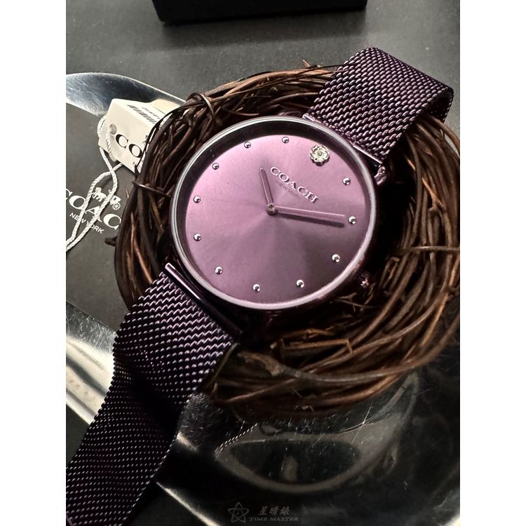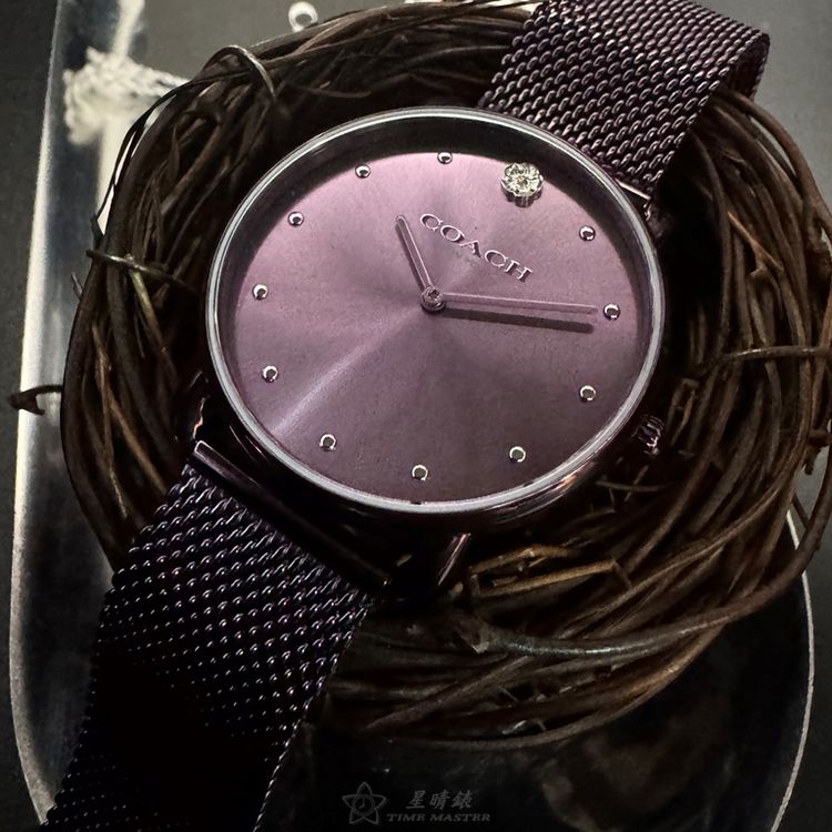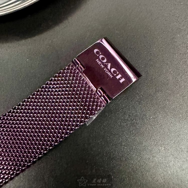 COACH手錶,編號CH00213,36mm紫色圓形精鋼錶殼,紫色簡約, 中二針顯示錶面,紫色米蘭錶帶款,別樹一格!