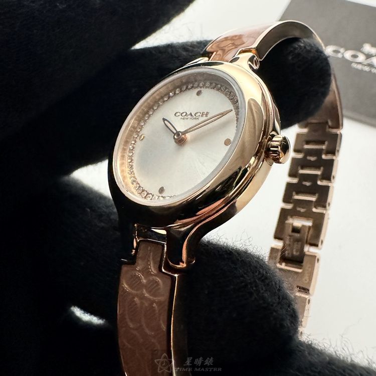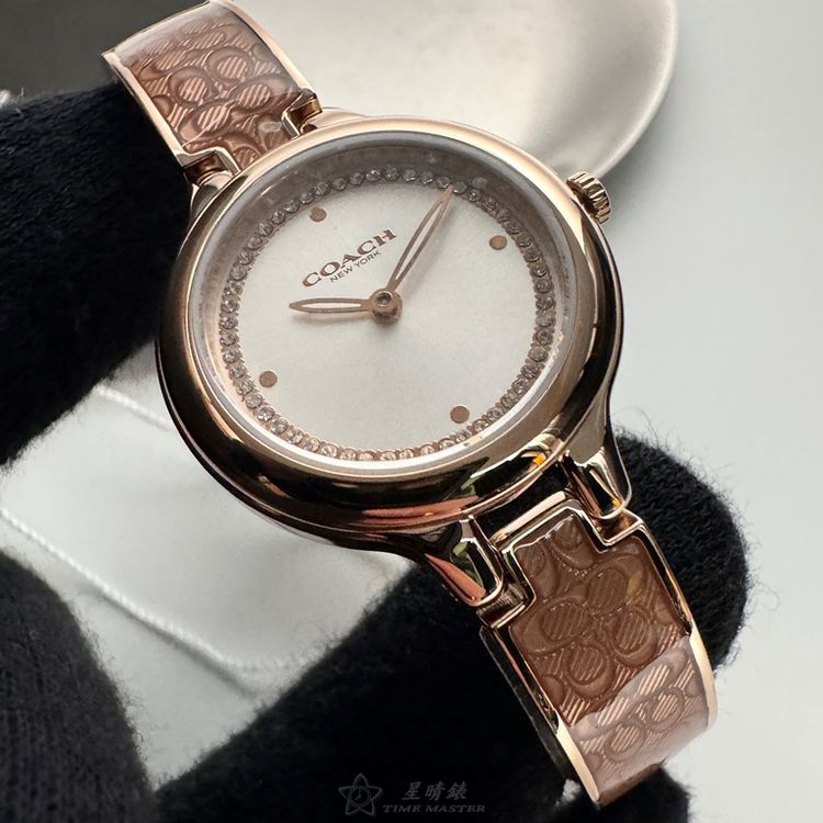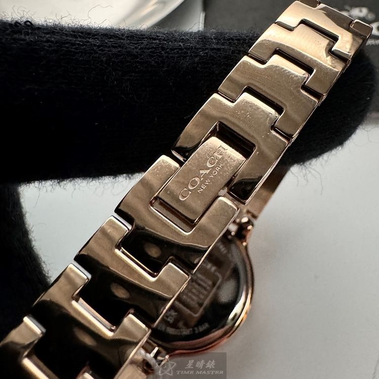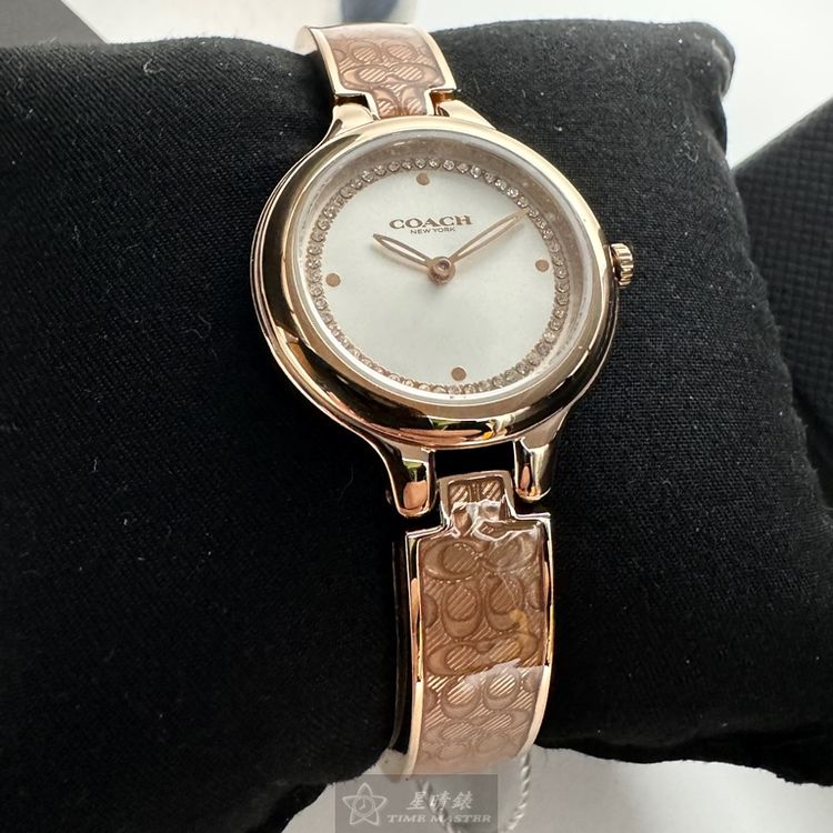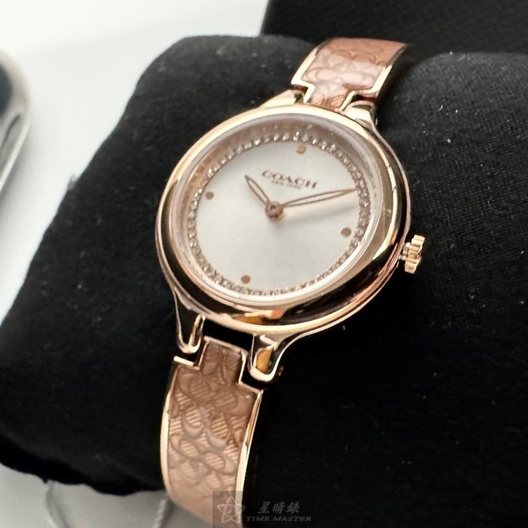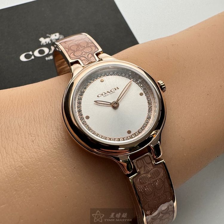 COACH手錶,編號CH00235,26mm玫瑰金圓形精鋼錶殼,銀白色簡約, 中二針顯示錶面,玫瑰金色精鋼錶帶款