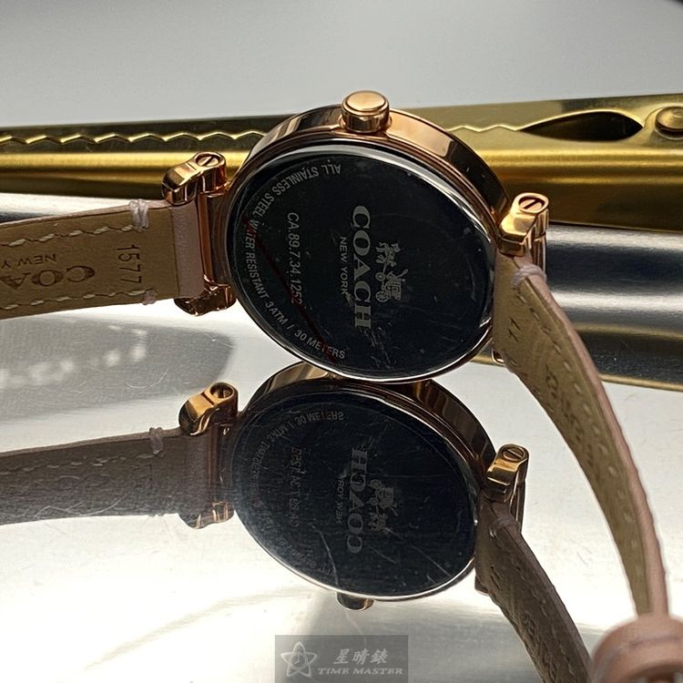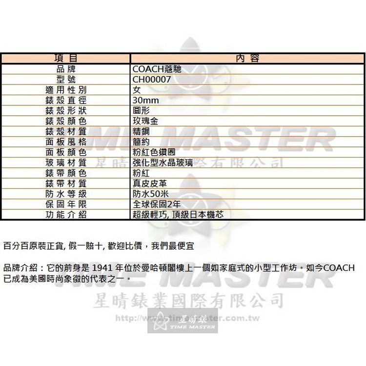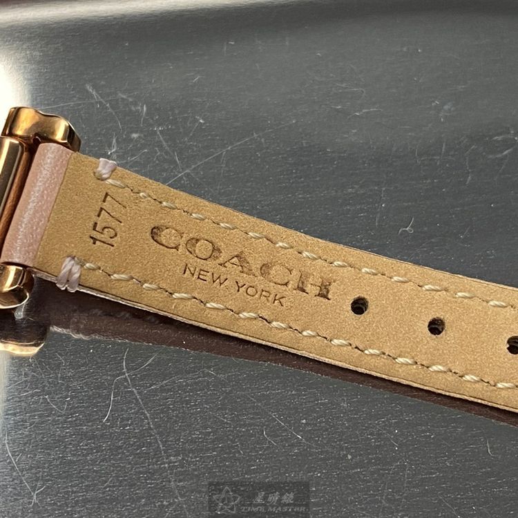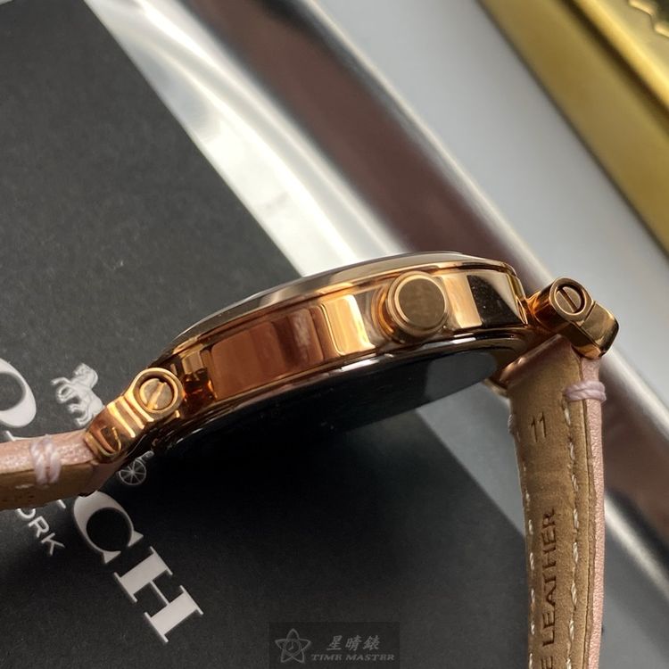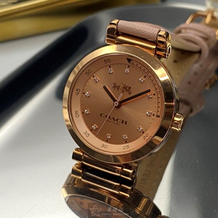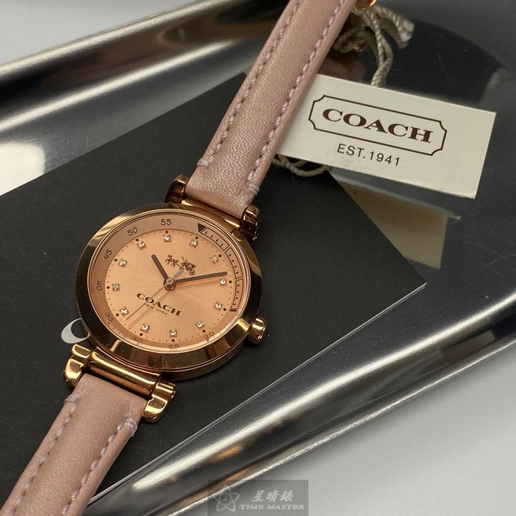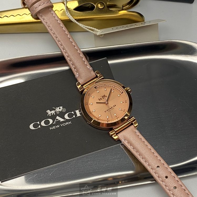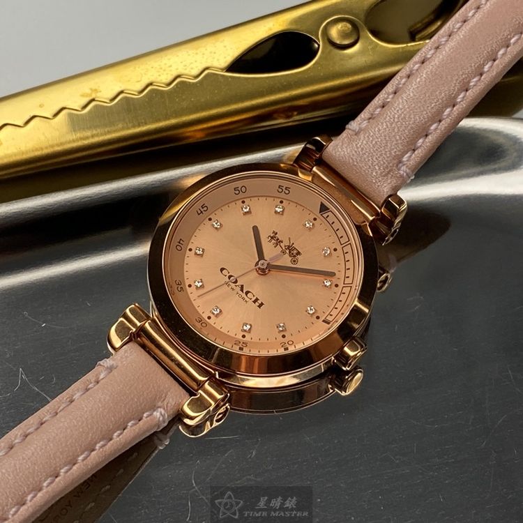 COACH蔻馳女錶,編號CH00007,30mm玫瑰金圓形精鋼錶殼,粉紅色鑽圈簡約錶面,粉紅真皮皮革錶帶款,表白好禮!
