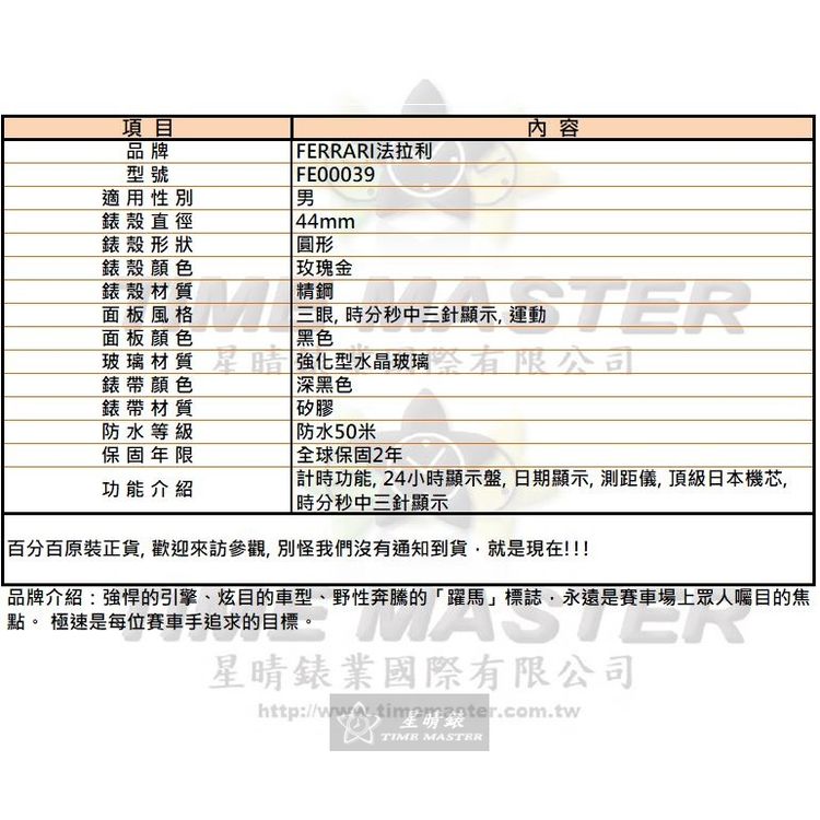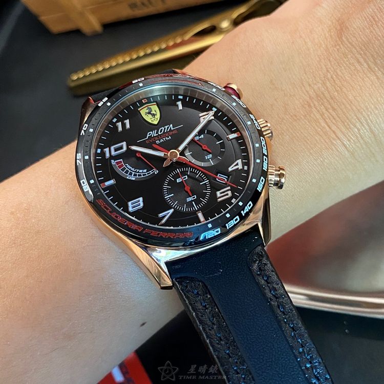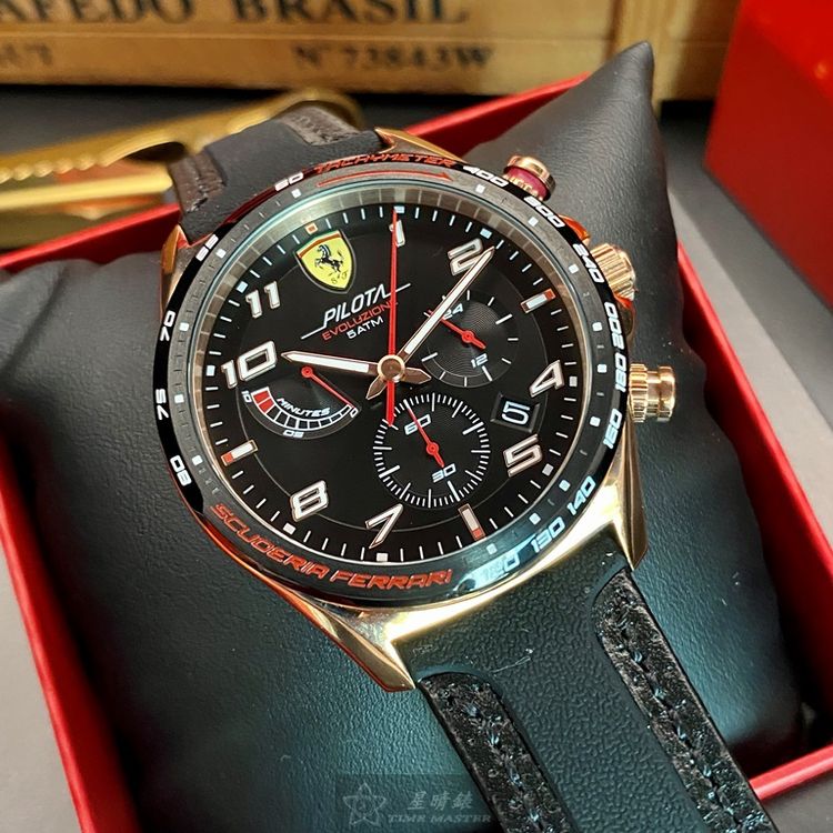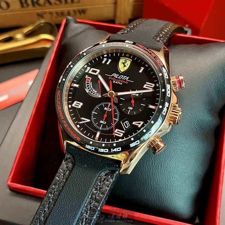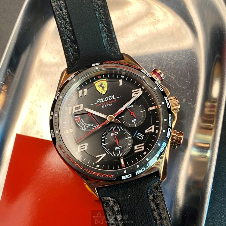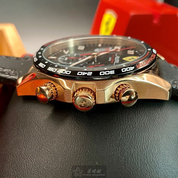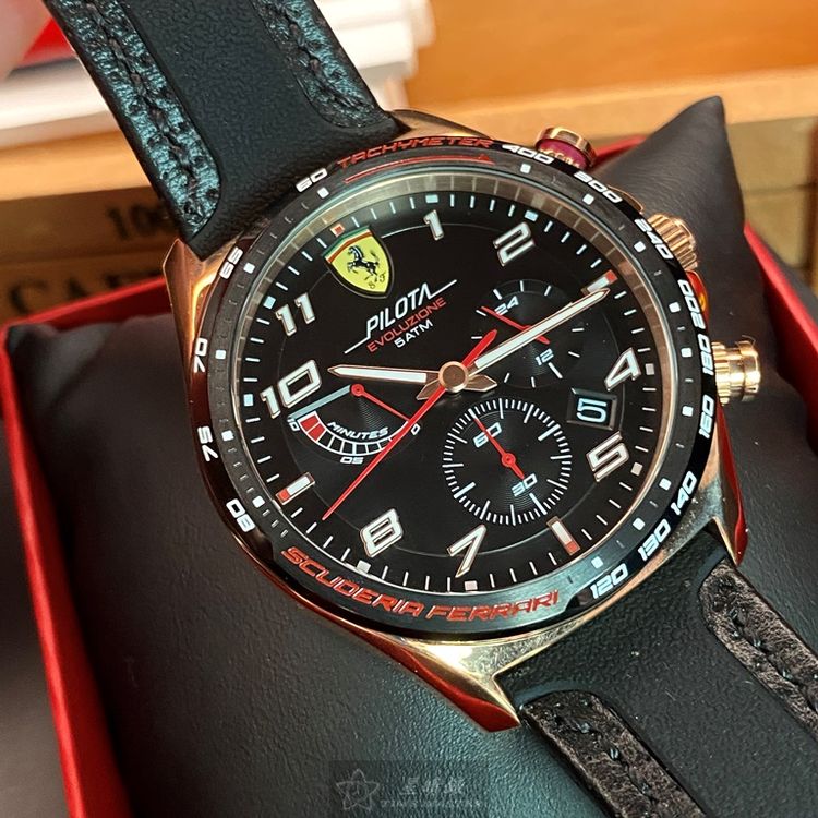 FERRARI手錶,編號FE00039,44mm玫瑰金錶殼,深黑色錶帶款