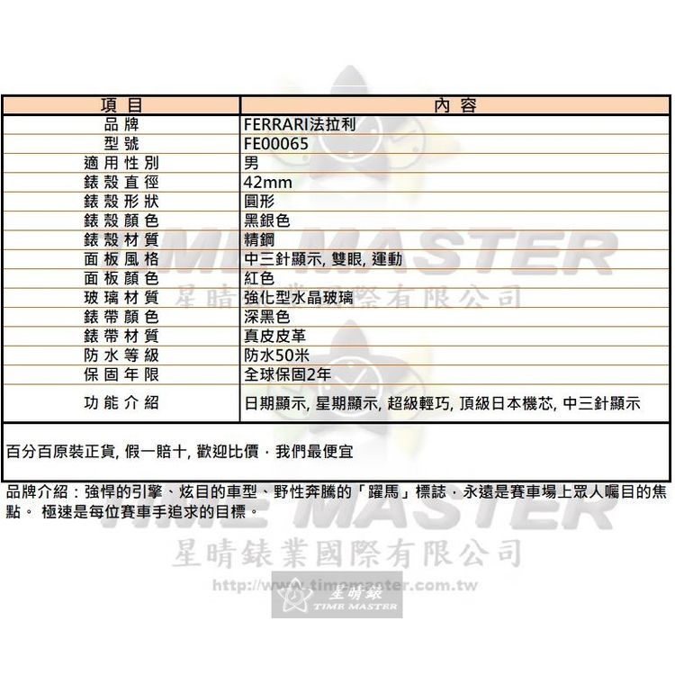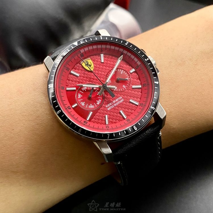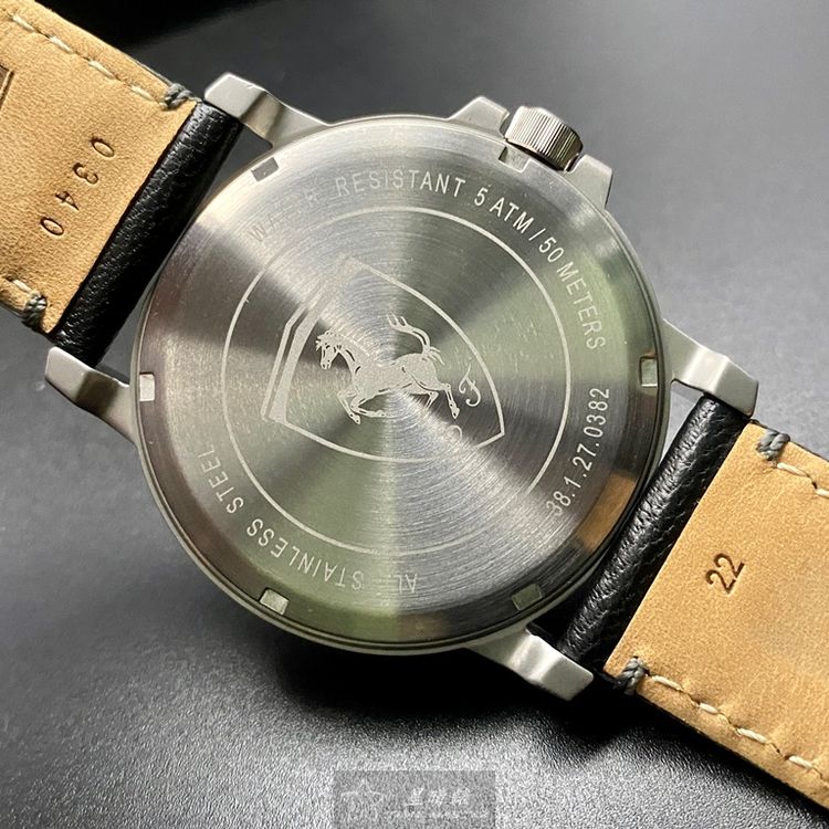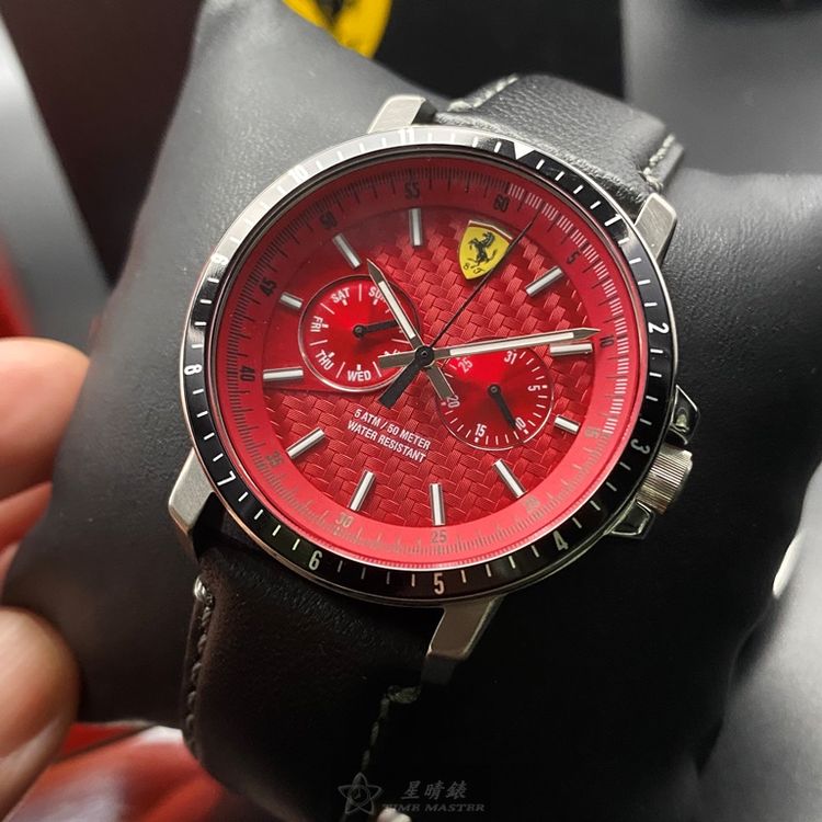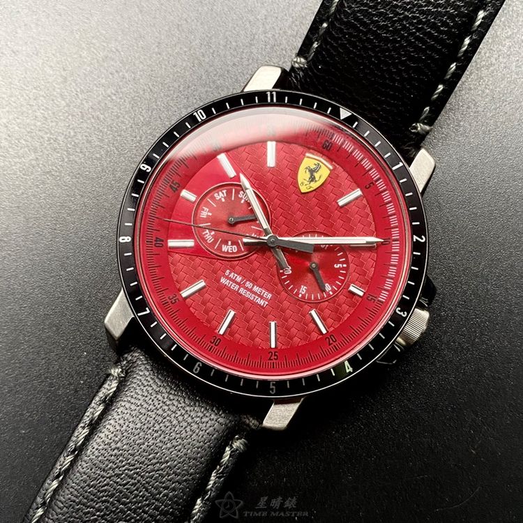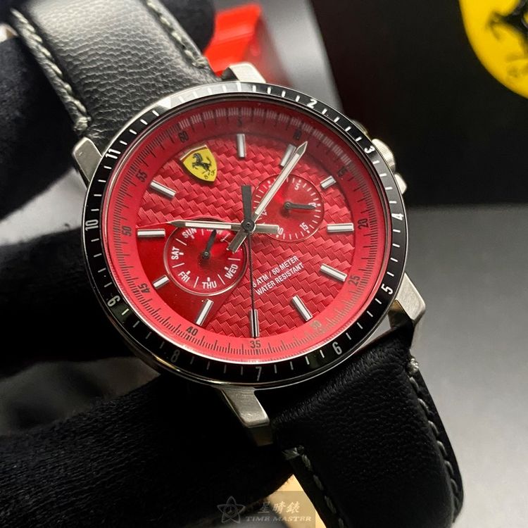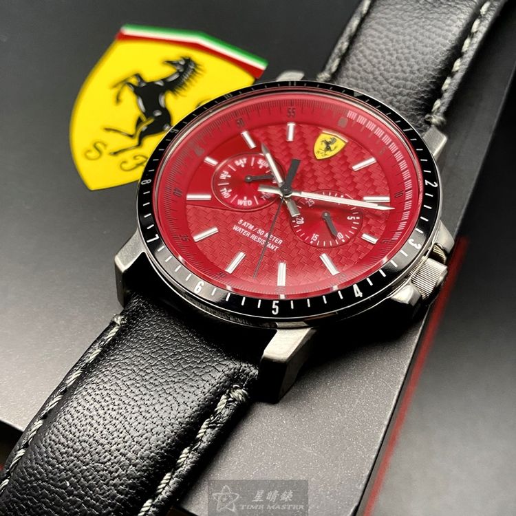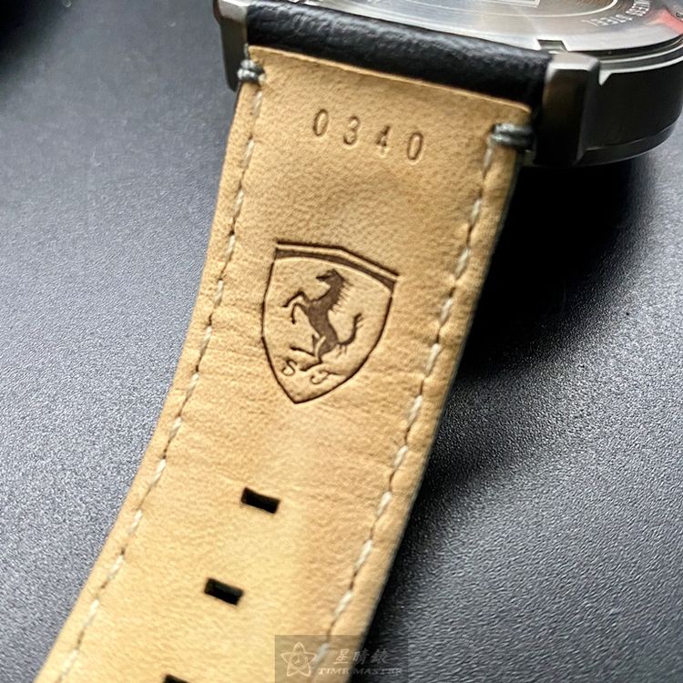 FERRARI手錶,編號FE00065,42mm黑銀色錶殼,深黑色錶帶款