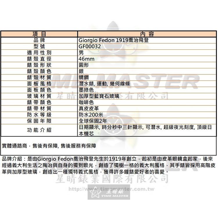 GiorgioFedon1919手錶,編號GF00032,46mm銀錶殼,咖啡色錶帶款