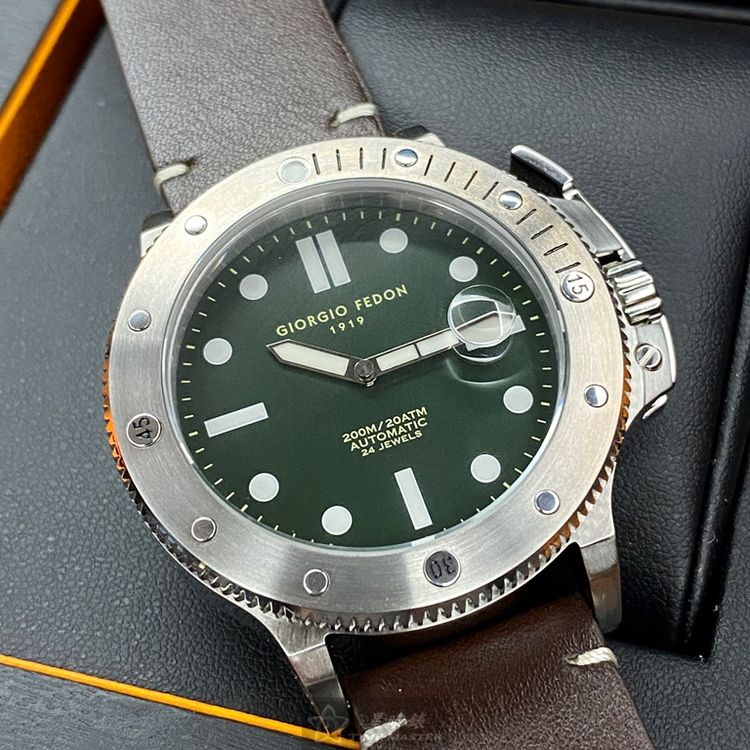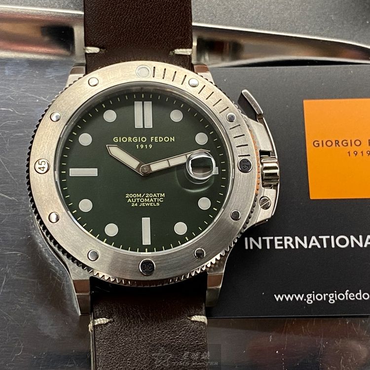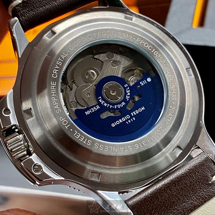 GiorgioFedon1919手錶,編號GF00034,46mm銀錶殼,咖啡色錶帶款