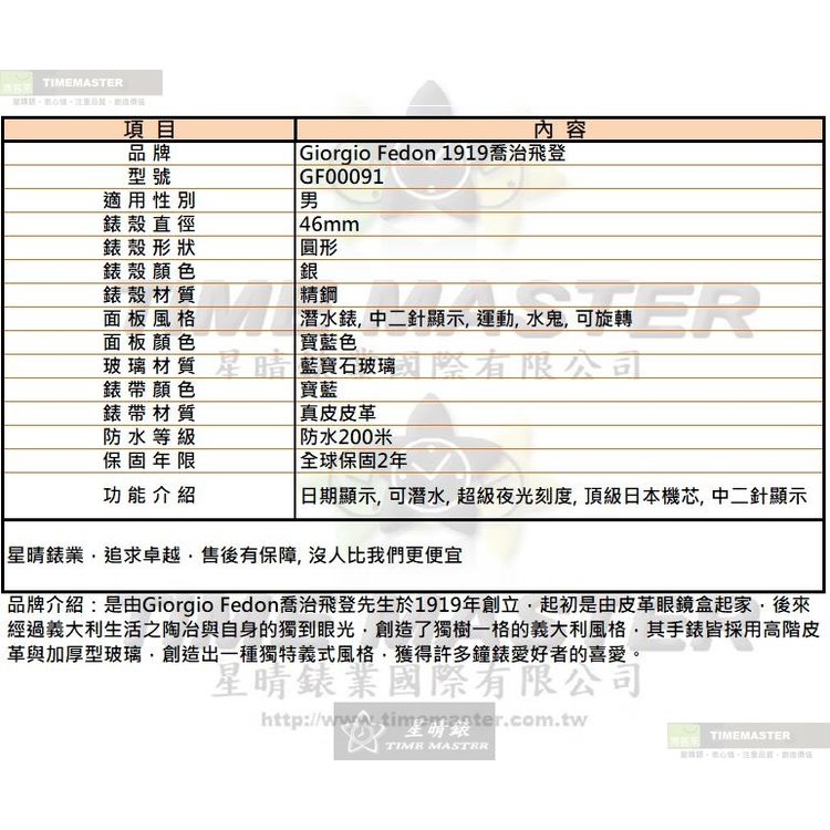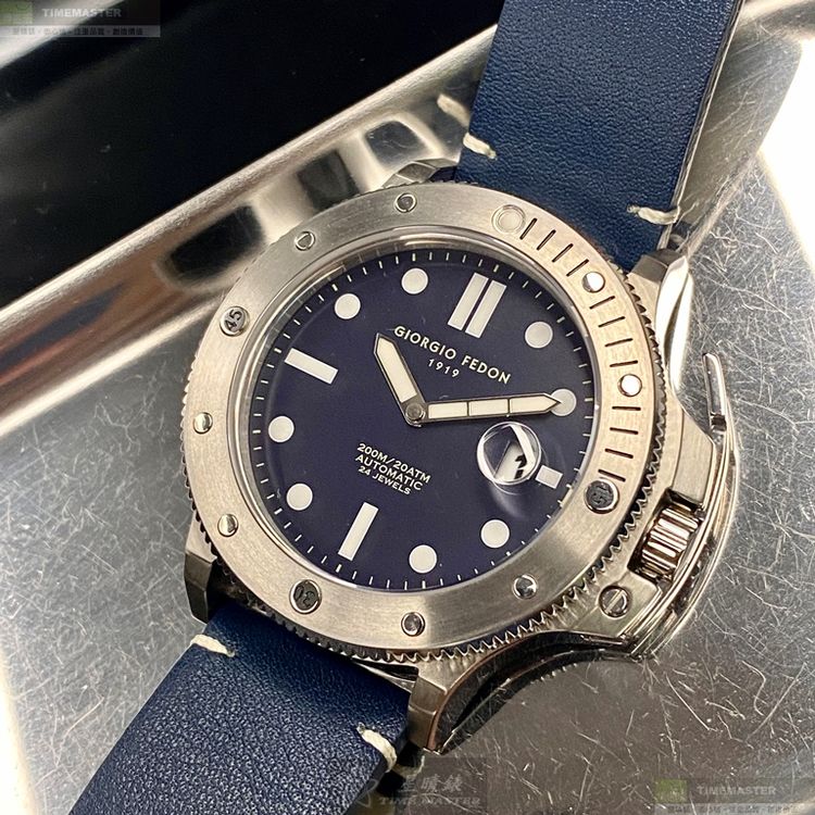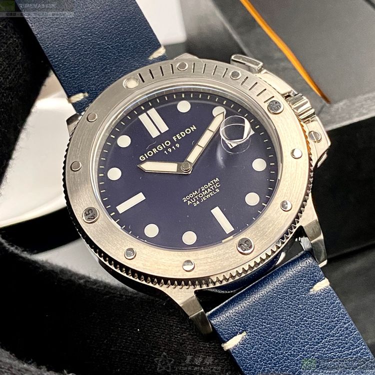 GiorgioFedon1919手錶,編號GF00091,46mm銀錶殼,寶藍錶帶款