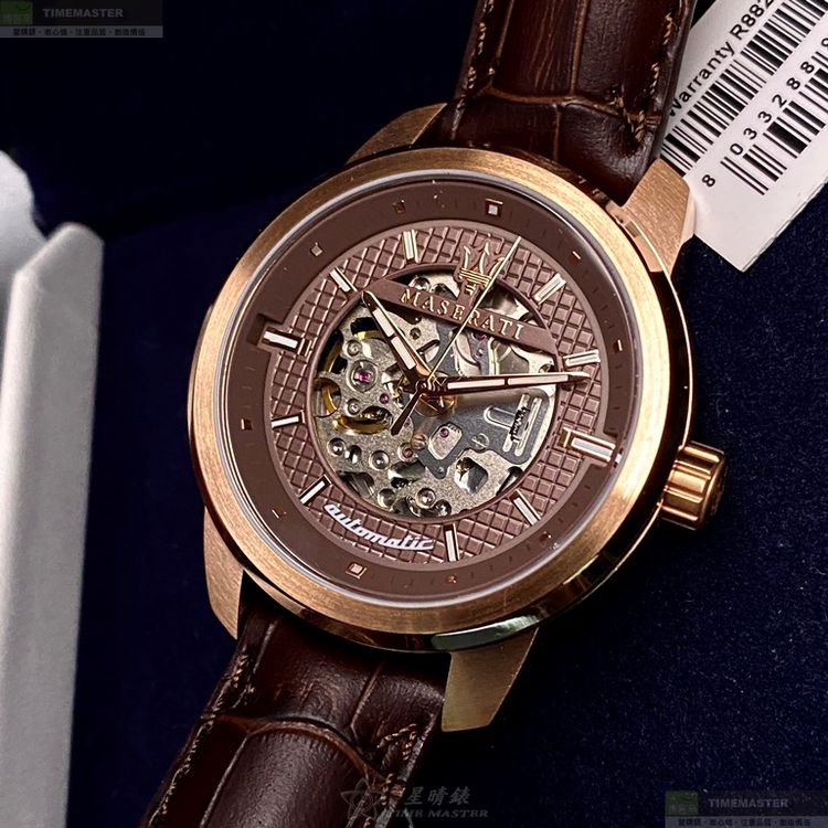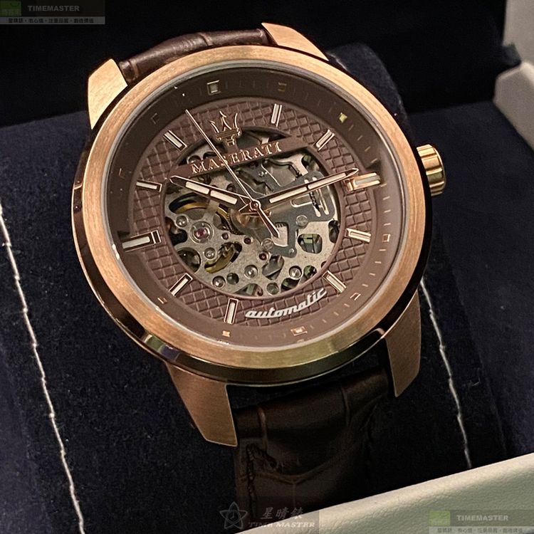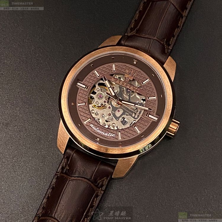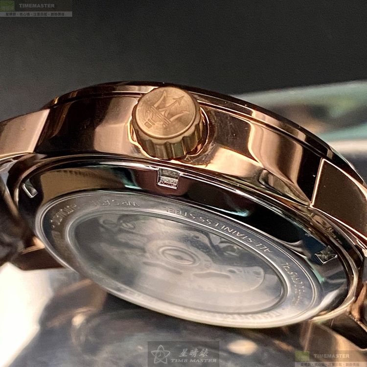 MASERATI手錶,編號R8821121001,44mm玫瑰金錶殼,咖啡色錶帶款