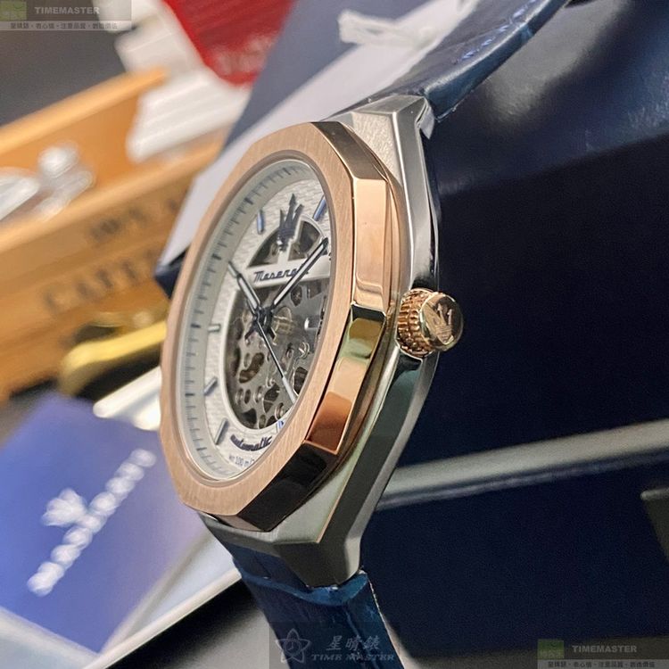 MASERATI手錶,編號R8821142001,42mm金色錶殼,寶藍錶帶款