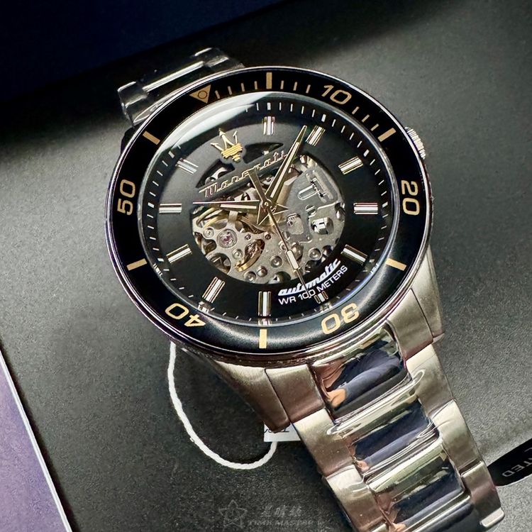 星晴錶業 MASERATI瑪莎拉蒂 R8823140008,男士必備。自動機械機芯,精準無比。錶殼直徑46mm,銀色精鋼打造,展現紳士風采。圓形錶殼,經典不敗。黑色鏤空面板,水鬼中三針顯示,雙面機械鏤空,專屬格調。藍寶石玻璃,堅韌耐用,為您的品味保駕護航。銀色精鋼錶帶,尊貴優雅。防水100米,無懼挑戰。全球保固2年,品質有保障。頂級日本機芯,每分每秒都是極致體驗。星晴錶業 MASERATI瑪莎拉蒂 R8823140008,敬獻時尚精品,成就非凡生活。