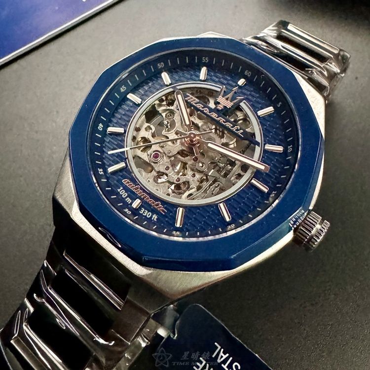 MASERATI手錶,編號R8823142004,46mm寶藍錶殼,銀色錶帶款-[置頂推薦]