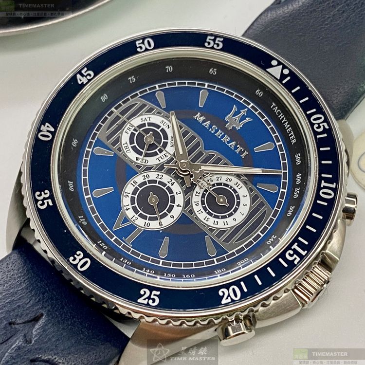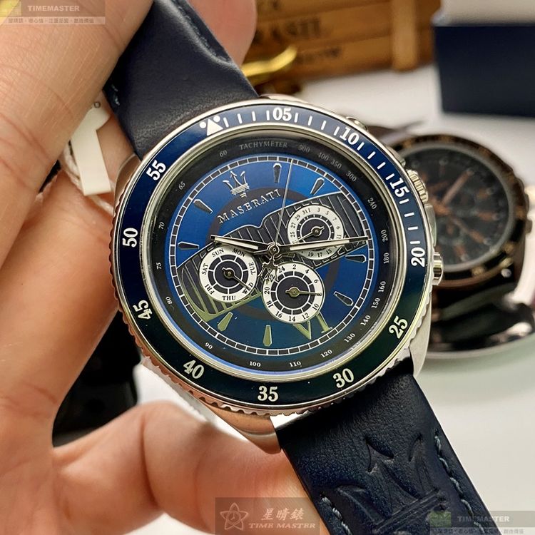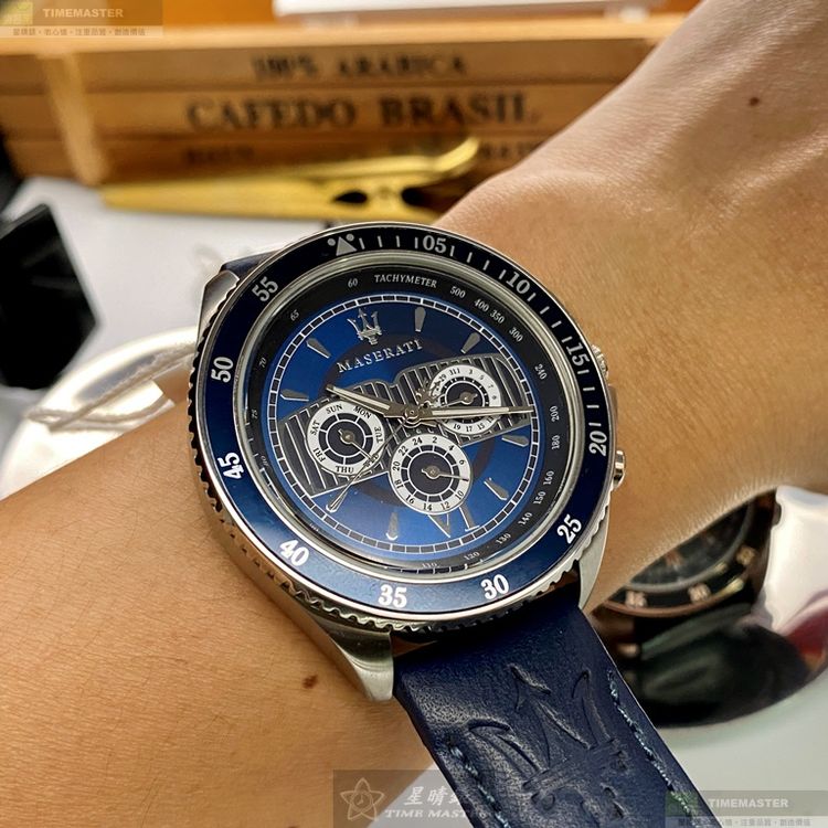 MASERATI手錶,編號R8851101002,46mm寶藍錶殼,寶藍錶帶款