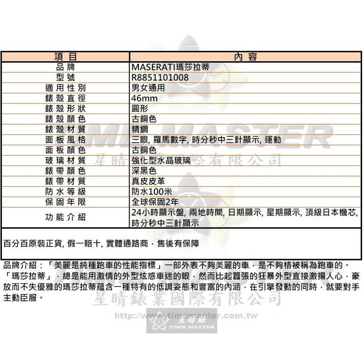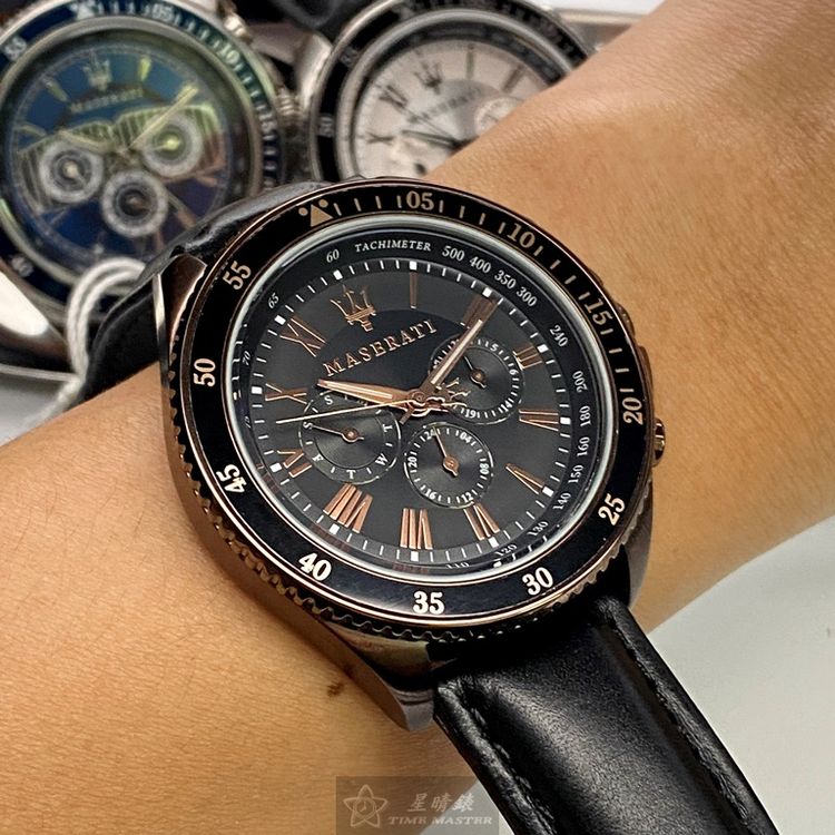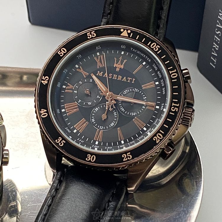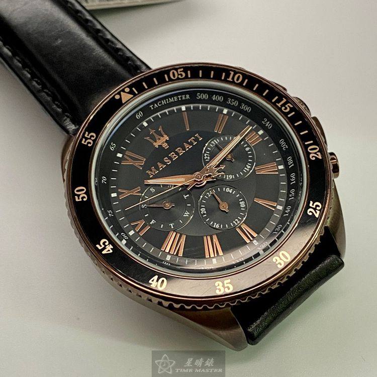 MASERATI手錶,編號R8851101008,46mm古銅色錶殼,深黑色錶帶款