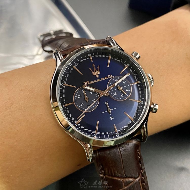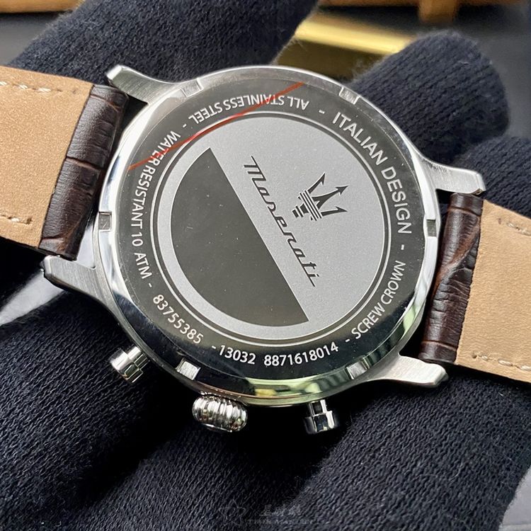 MASERATI手錶,編號R8871618014,42mm銀錶殼,咖啡色錶帶款