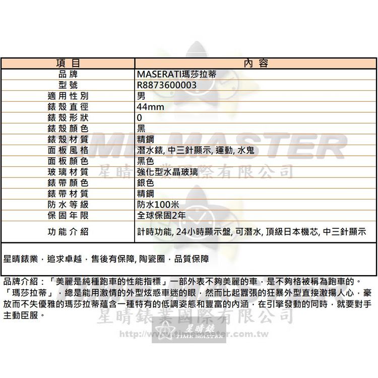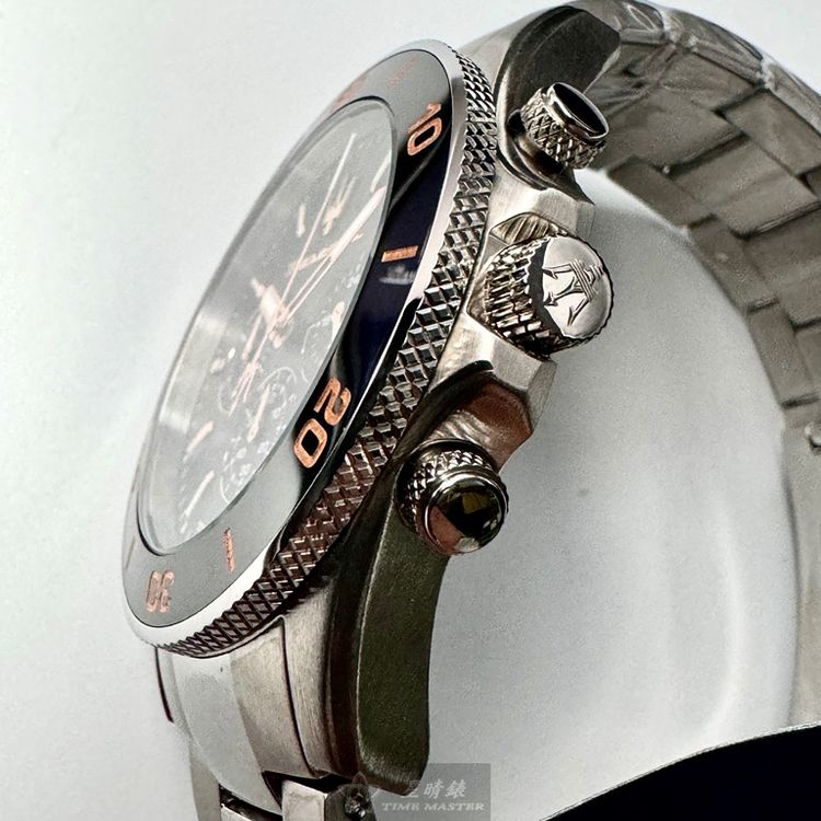 MASERATI手錶,編號R8873600003,44mm黑錶殼,銀色錶帶款