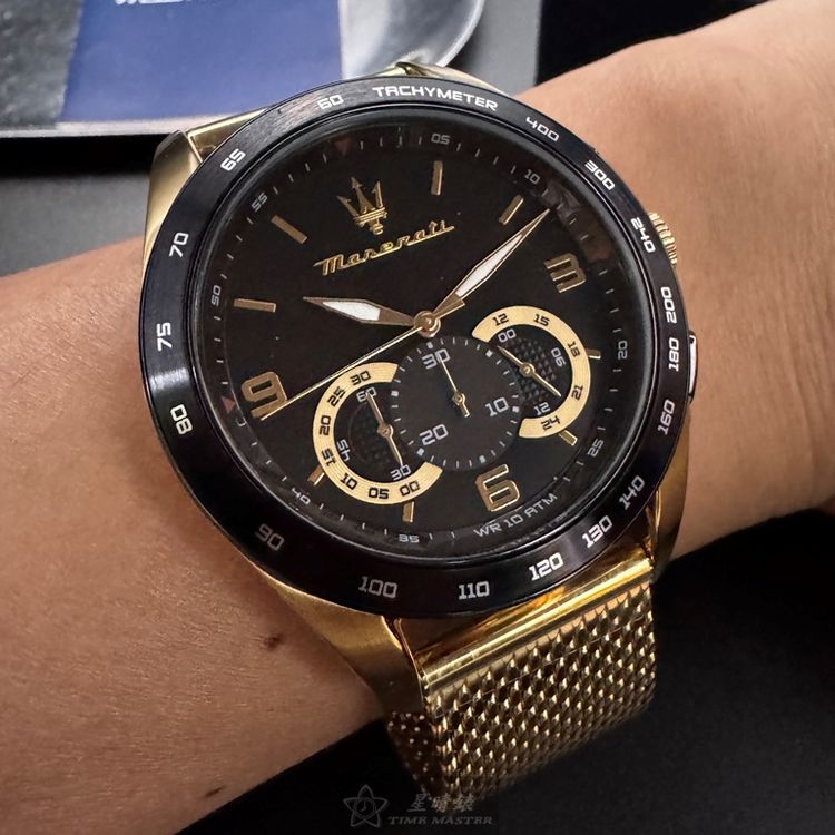 MASERATI手錶,編號R8873612010,46mm金色錶殼,金色錶帶款