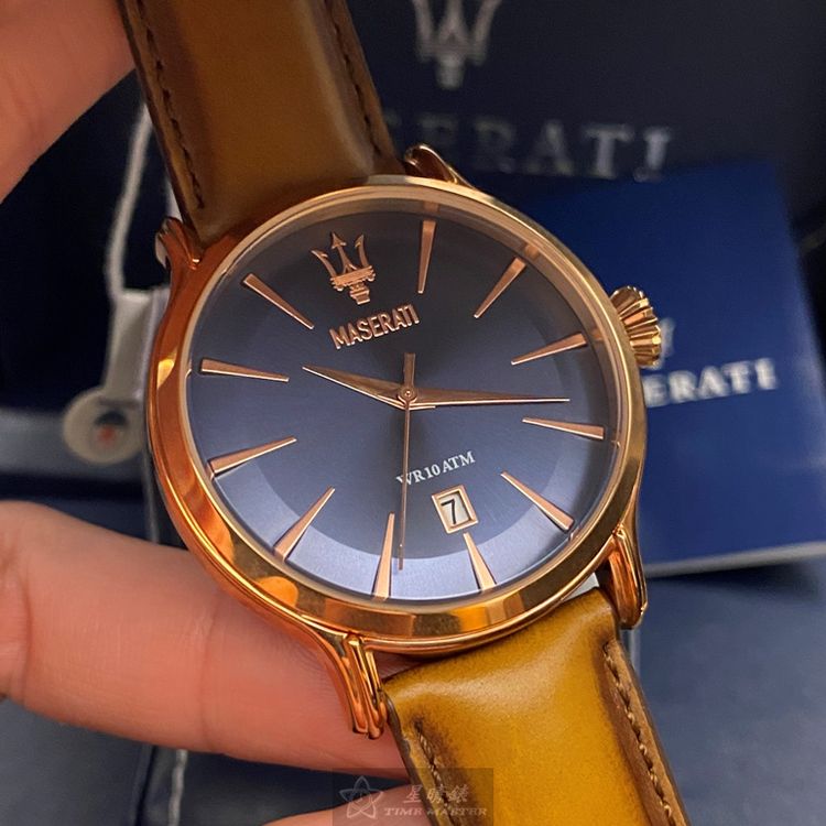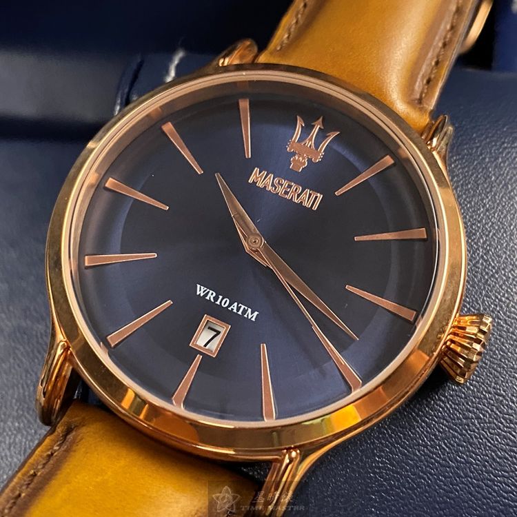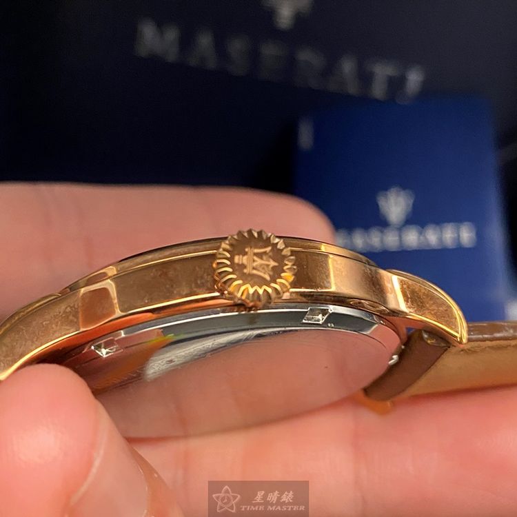MASERATI瑪莎拉蒂男女通用錶,編號R8851118001,42mm玫瑰金錶殼,咖啡色錶帶款