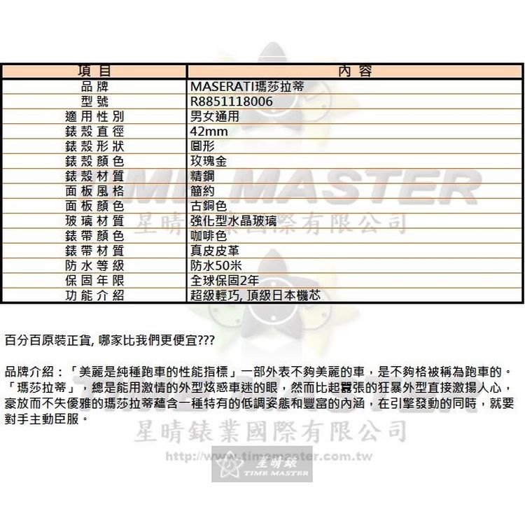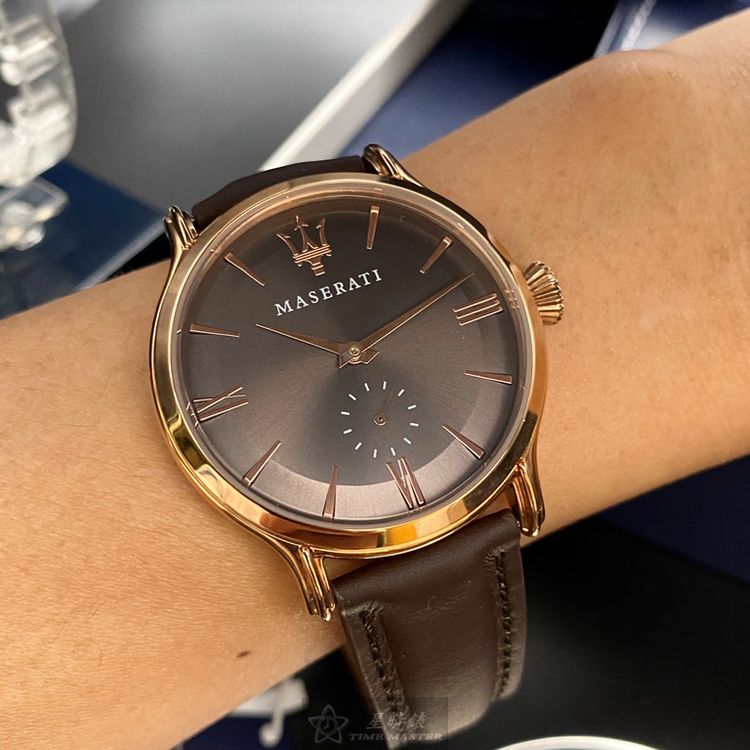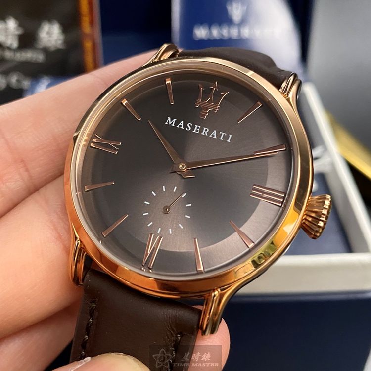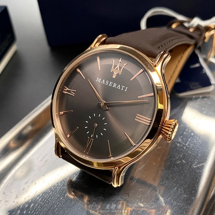 MASERATI瑪莎拉蒂男女通用錶,編號R8851118006,42mm玫瑰金錶殼,咖啡色錶帶款