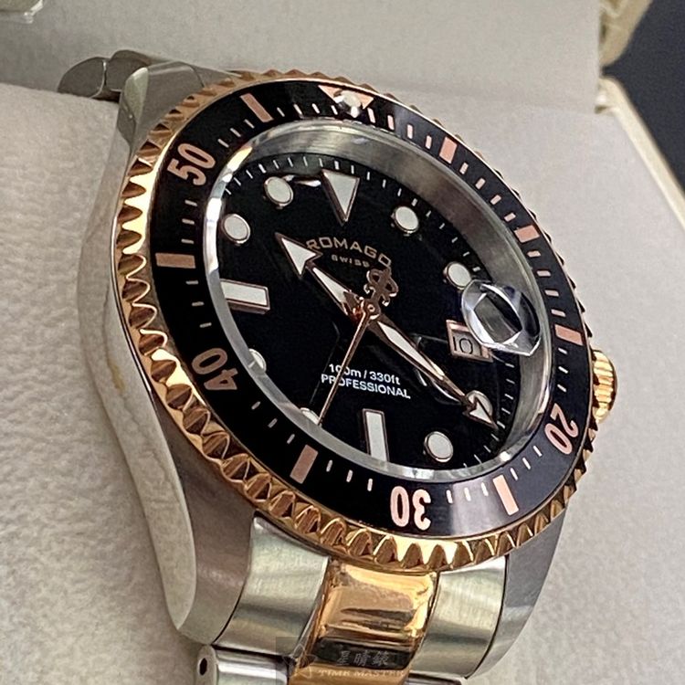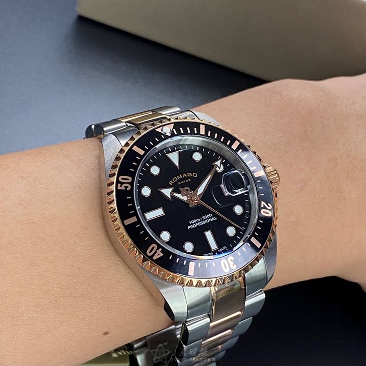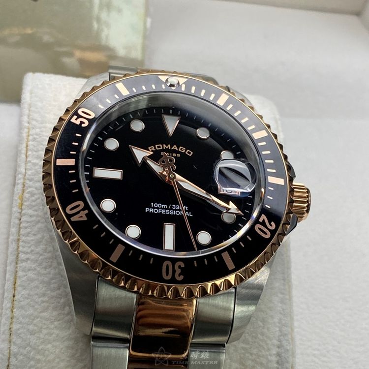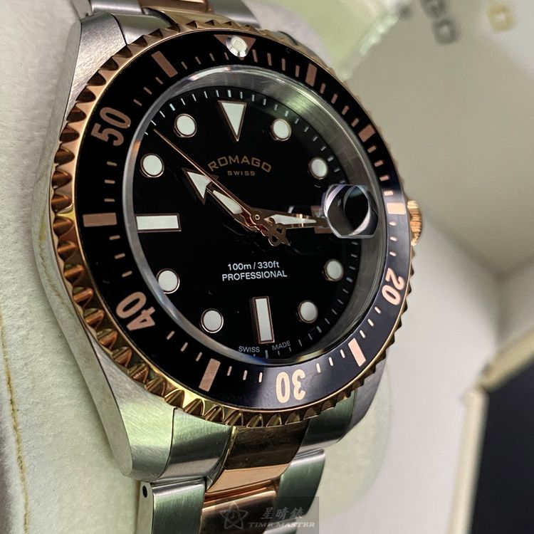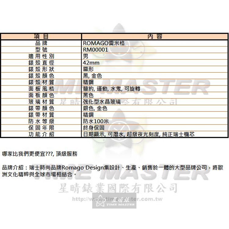 ROMAGO雷米格男錶,編號RM00001,42mm黑, 金色錶殼,銀色, 金色錶帶款