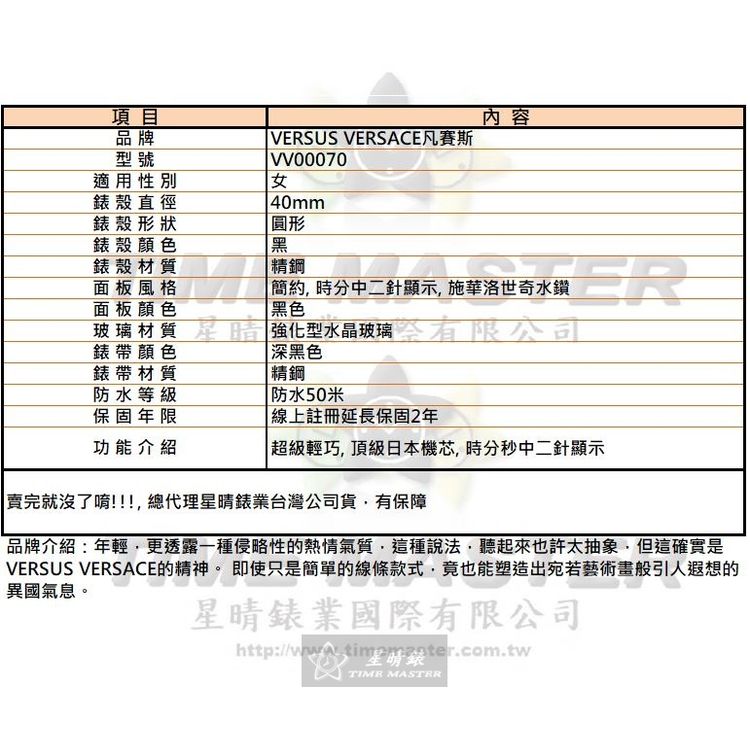 1.Versus Versace凡賽斯手錶-台灣獨家代理商