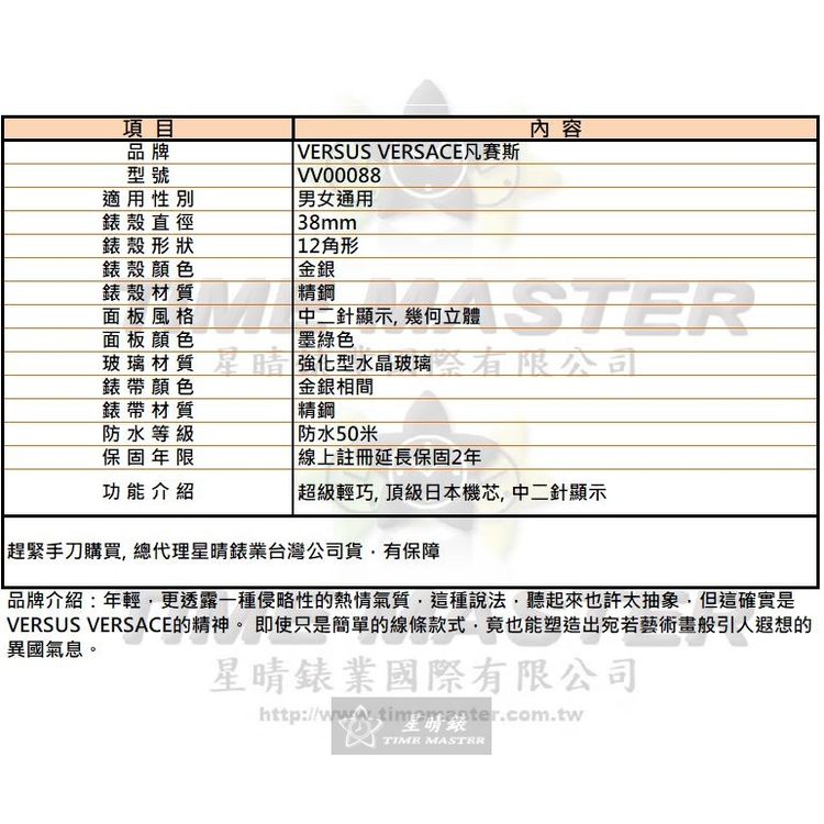 1.Versus Versace凡賽斯手錶-台灣獨家代理商