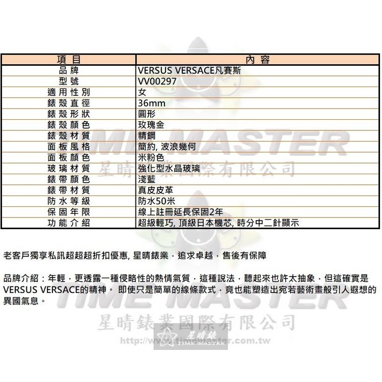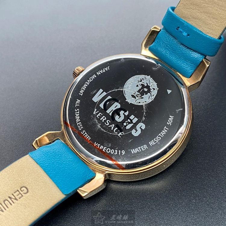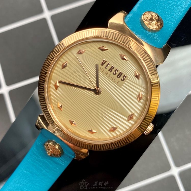 VERSUS VERSACE手錶,編號VV00297,36mm玫瑰金錶殼,淺藍錶帶款