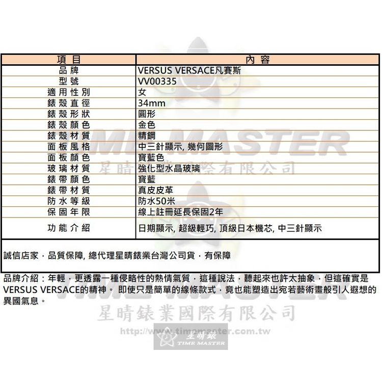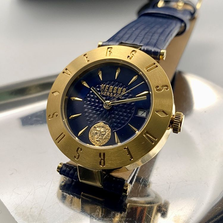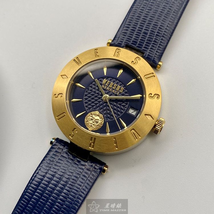 VERSUS VERSACE手錶,編號VV00335,34mm金色錶殼,寶藍錶帶款