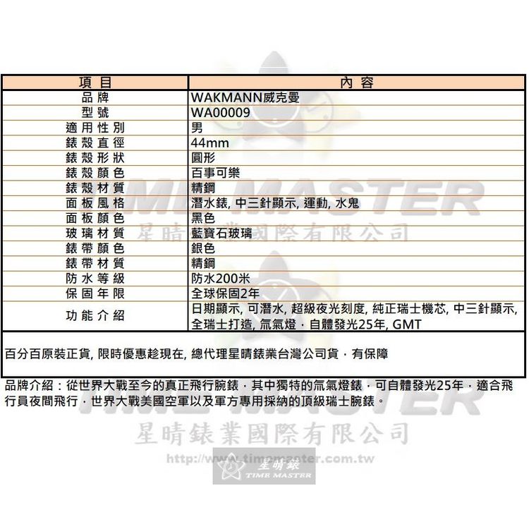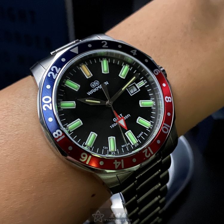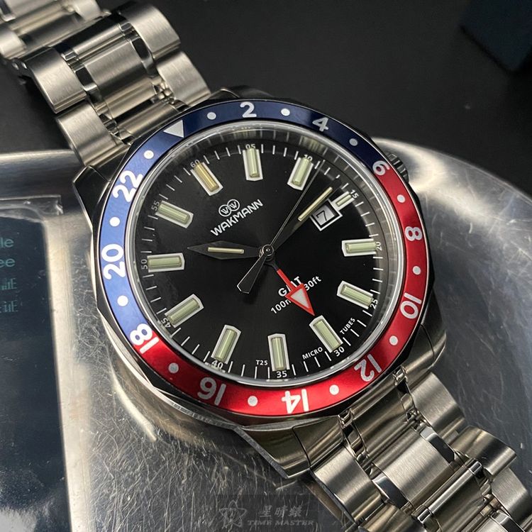 WAKMANN手錶,編號WA00009,44mm百事可樂錶殼,銀色錶帶款