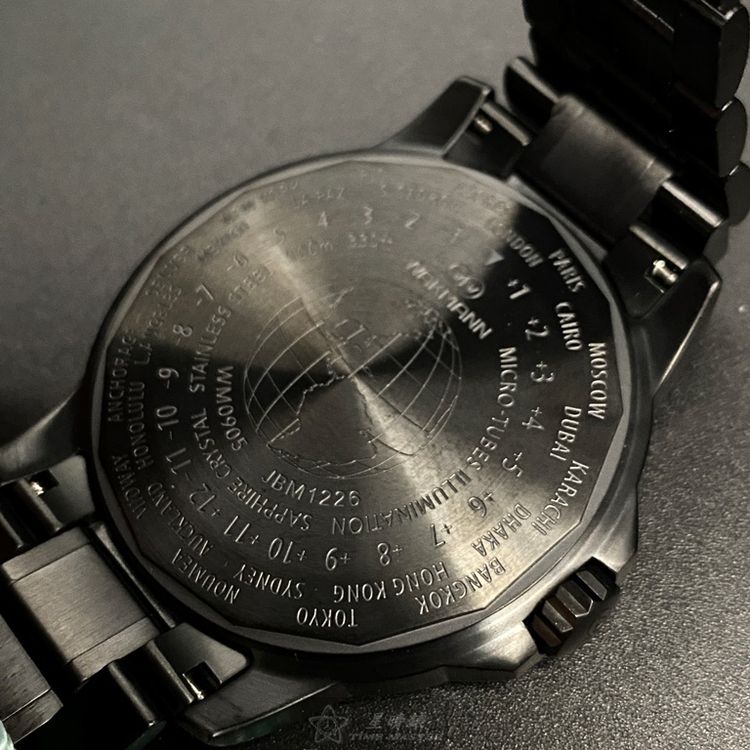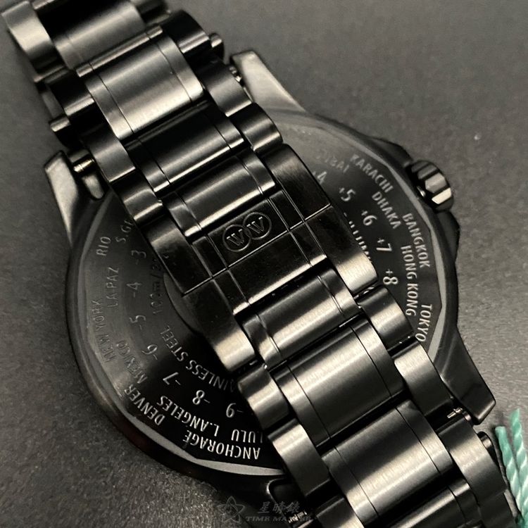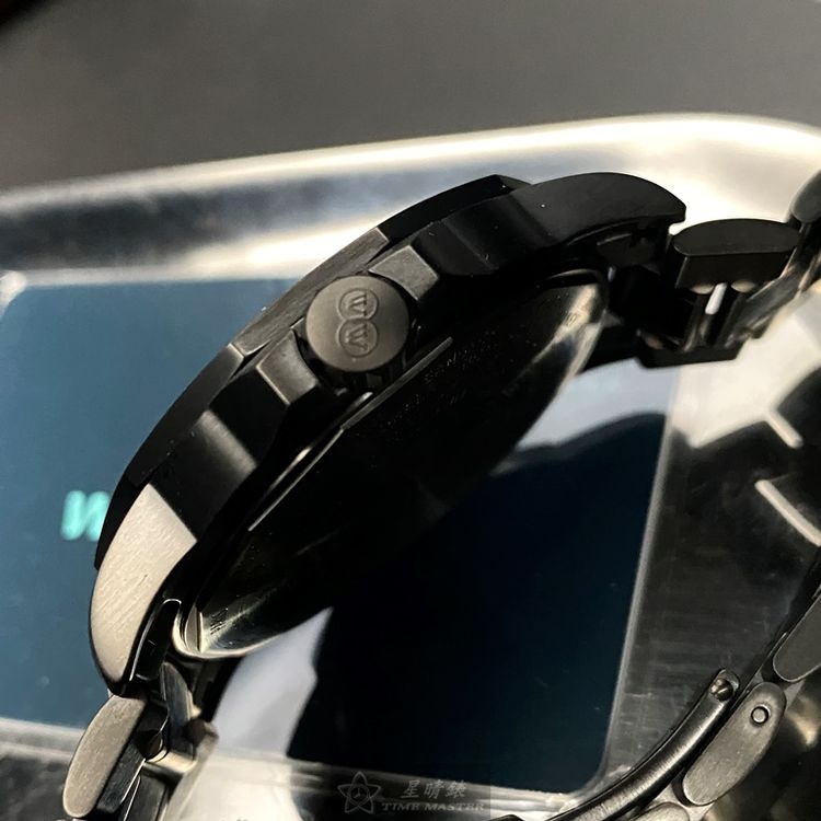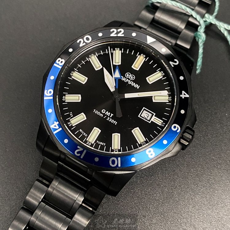 WAKMANN手錶,編號WA00028,44mm黑圓形精鋼錶殼,黑色潛水錶, 中三針顯示錶面,深黑色精鋼錶帶款