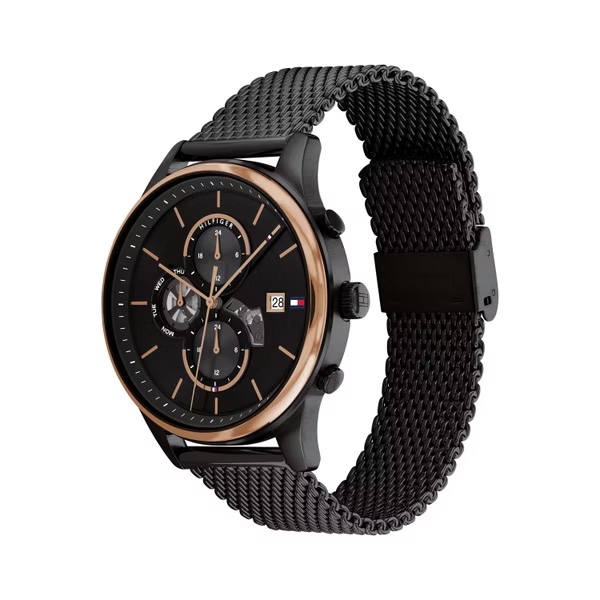 原廠保固兩年【高雄時光鐘錶】Tommy Hilfiger 1710505 黑殼 黑面 咖圈 三眼 鏤空 經典腕錶