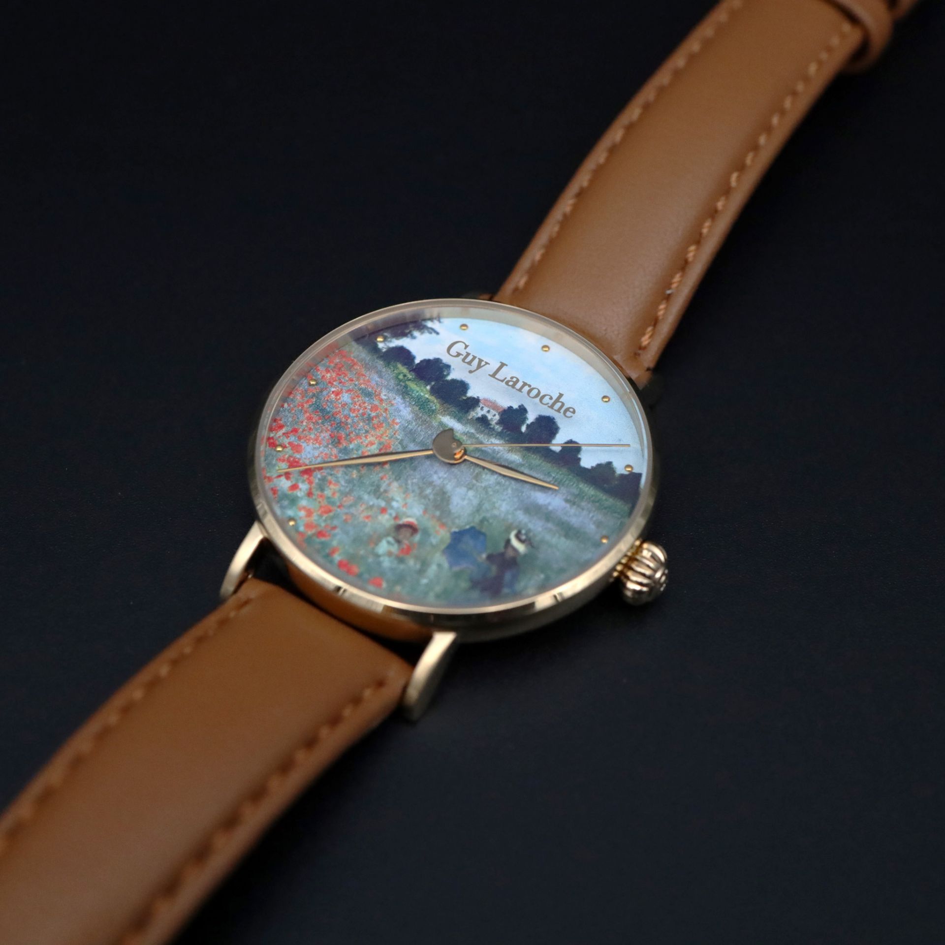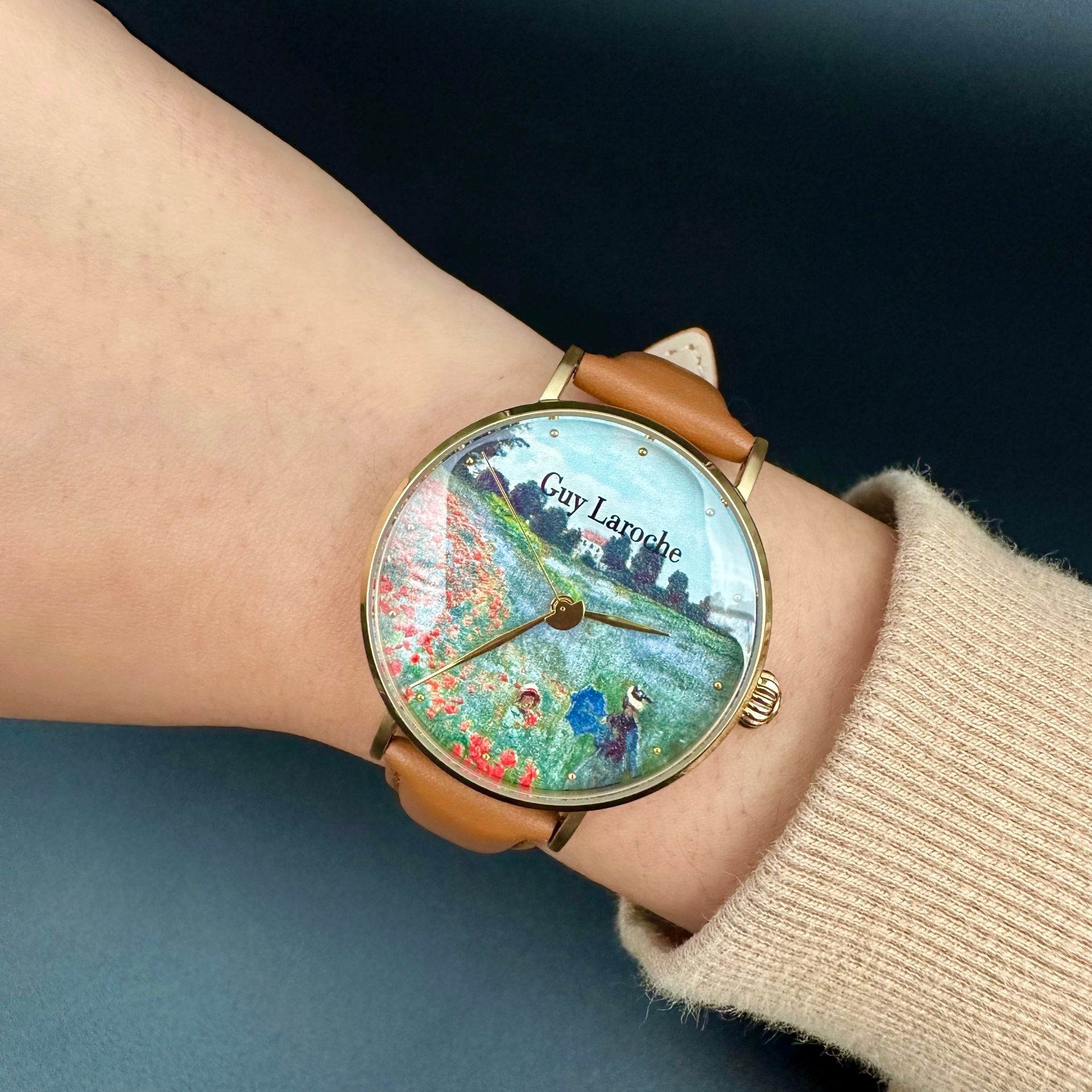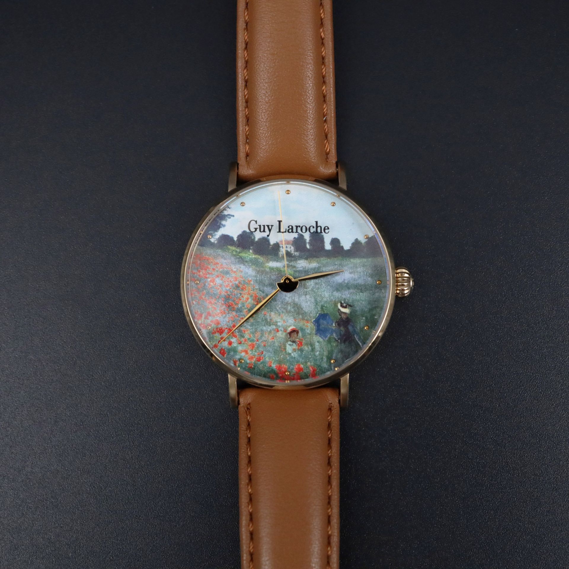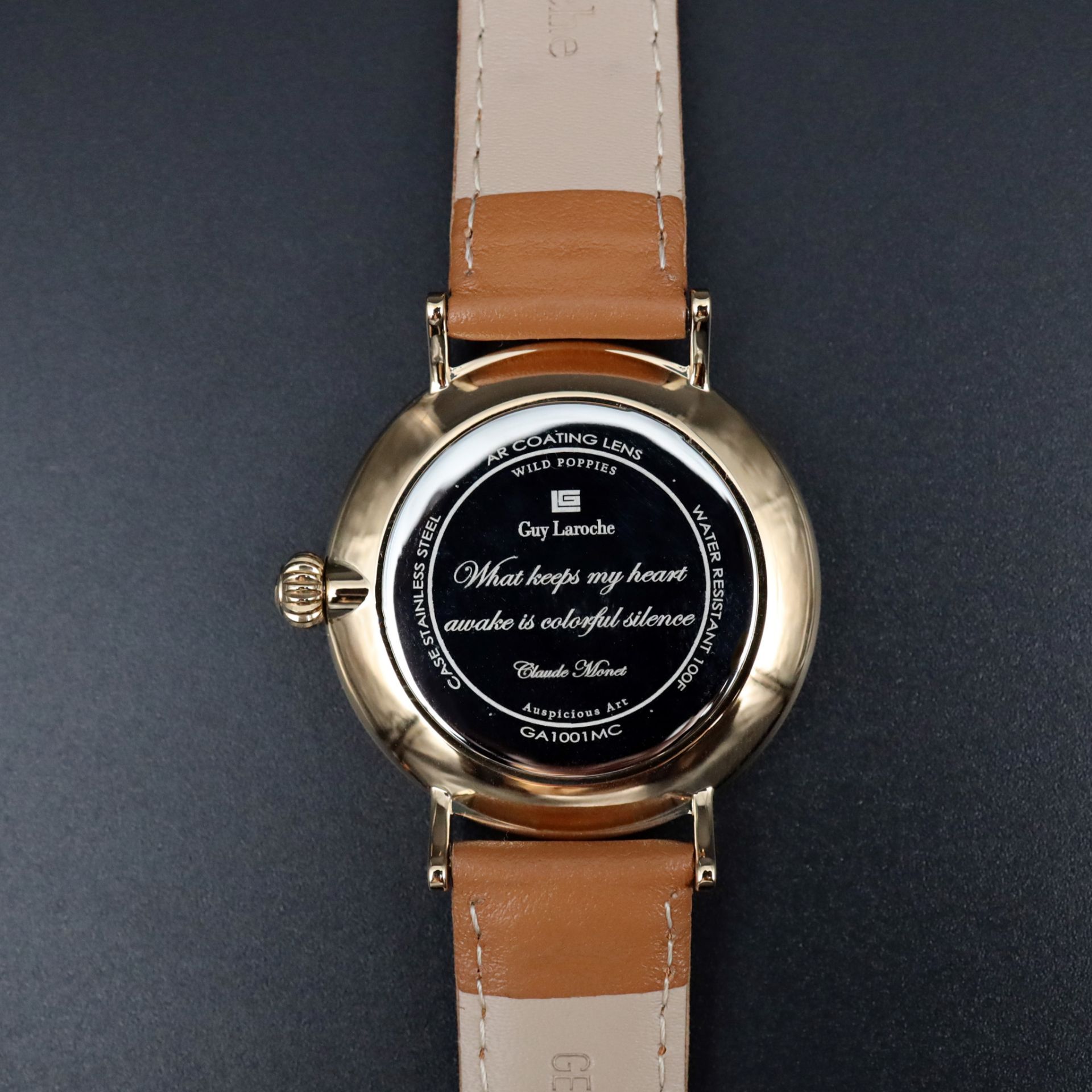 原廠公司貨 瑞士機芯、30米防水 3D立體印刷世界名畫 畫作:阿爾讓特伊的罌粟花園 不鏽鋼錶殼、義大利真皮錶帶 料號:GA1001WP-03 姬龍雪品牌工藝,多元百變的豐富性格 來自法國的頂級時尚品牌姬龍雪,起源於1956年的法國巴黎,見證了巴黎時尚的鼎盛時期,憑藉其大膽的設計,在時尚界佔據相當重要的地位,也擠身為極具影響力傳奇品牌。 姬龍雪腕錶基於法國浪漫、典雅與隨性不羈的文化,讓其簡潔設計風格自成一派。設計上注入許多獨立的時尚元素,憑藉時尚的角度演繹現代人不同個性,添入簡約、新穎且跳躍式的設計理念,透過舒適的線條,塑造出多元與百變的腕錶風格。 國際名畫戴著走,刻刻增添藝術氣息 姬龍雪尊重藝術,揉和了時計與藝術的嶄新概念,把名畫與手錶結合為一體,推出特別的”Art Watch”藝術系列的腕錶。腕錶系列靈感來自法國知名的大師級畫家,透過與世界名畫的結合,把藝術帶進生活裡,成為展現氣質品味的飾品。