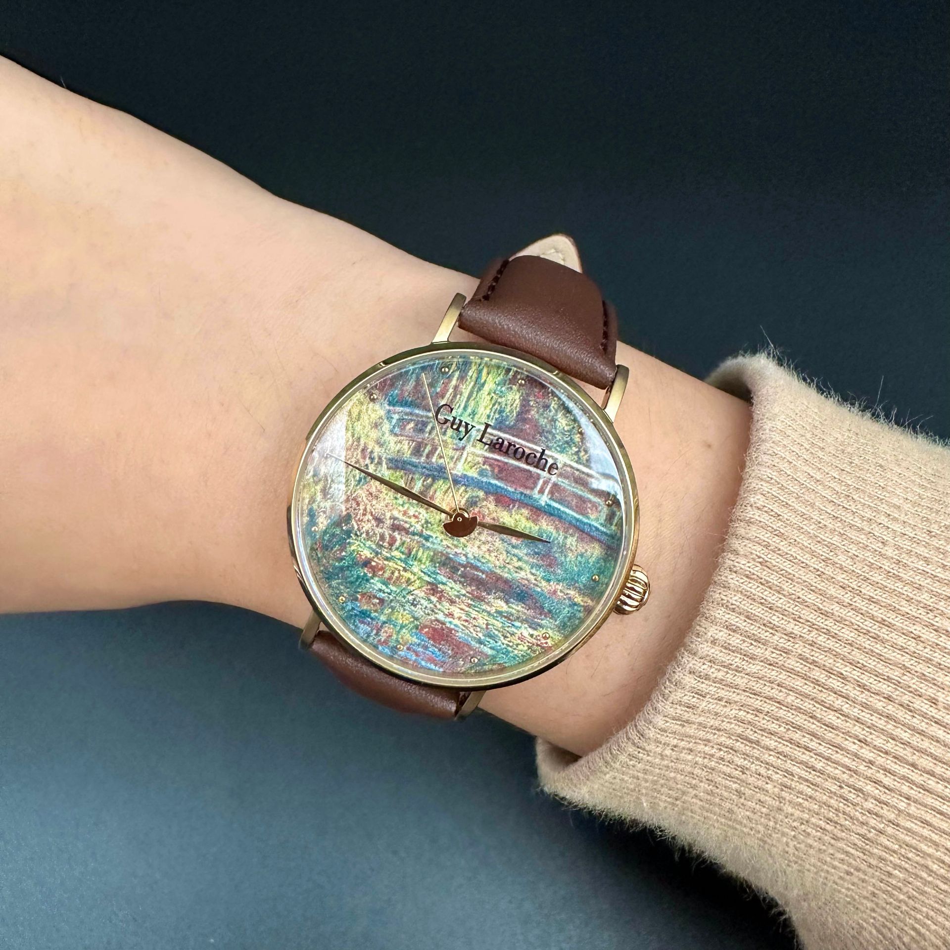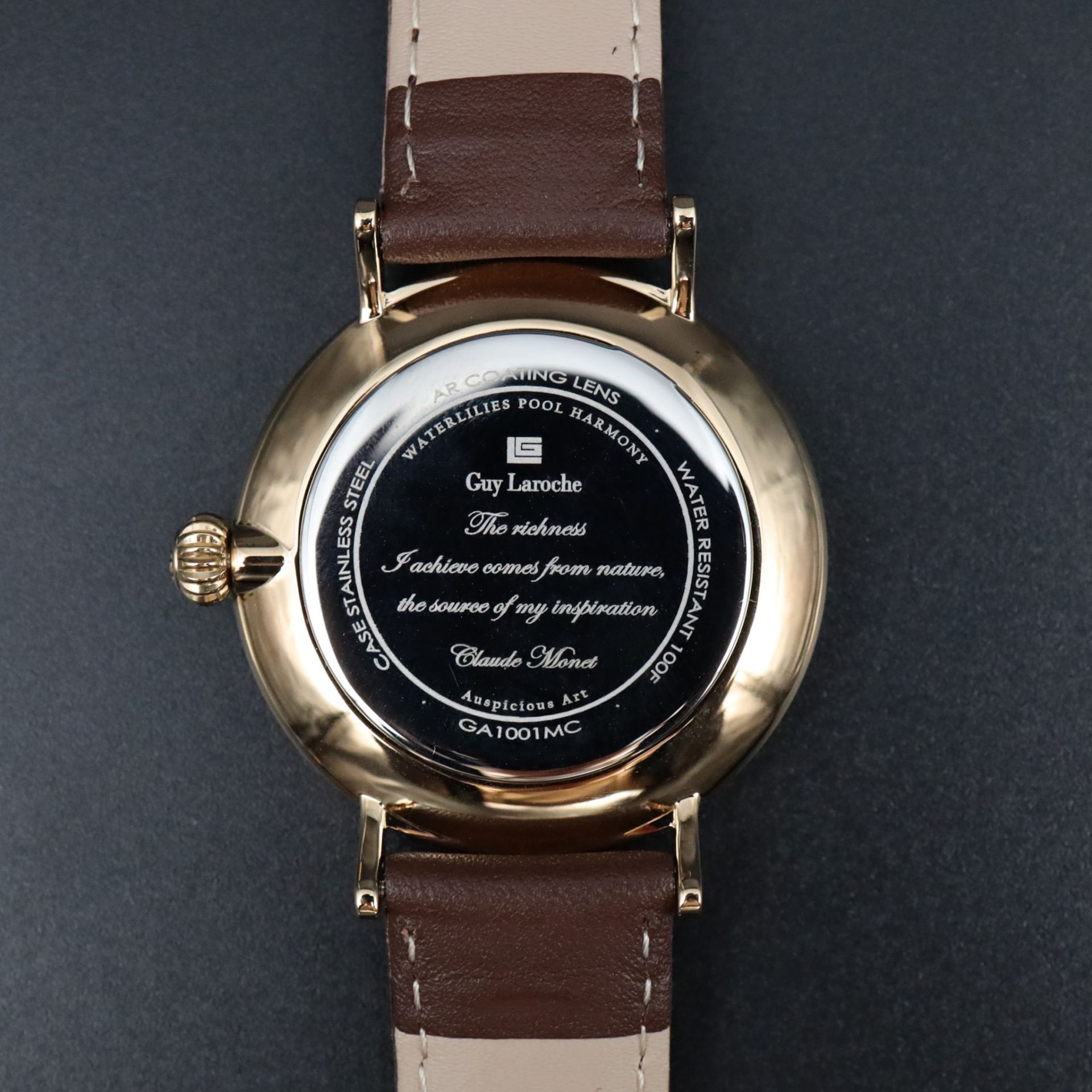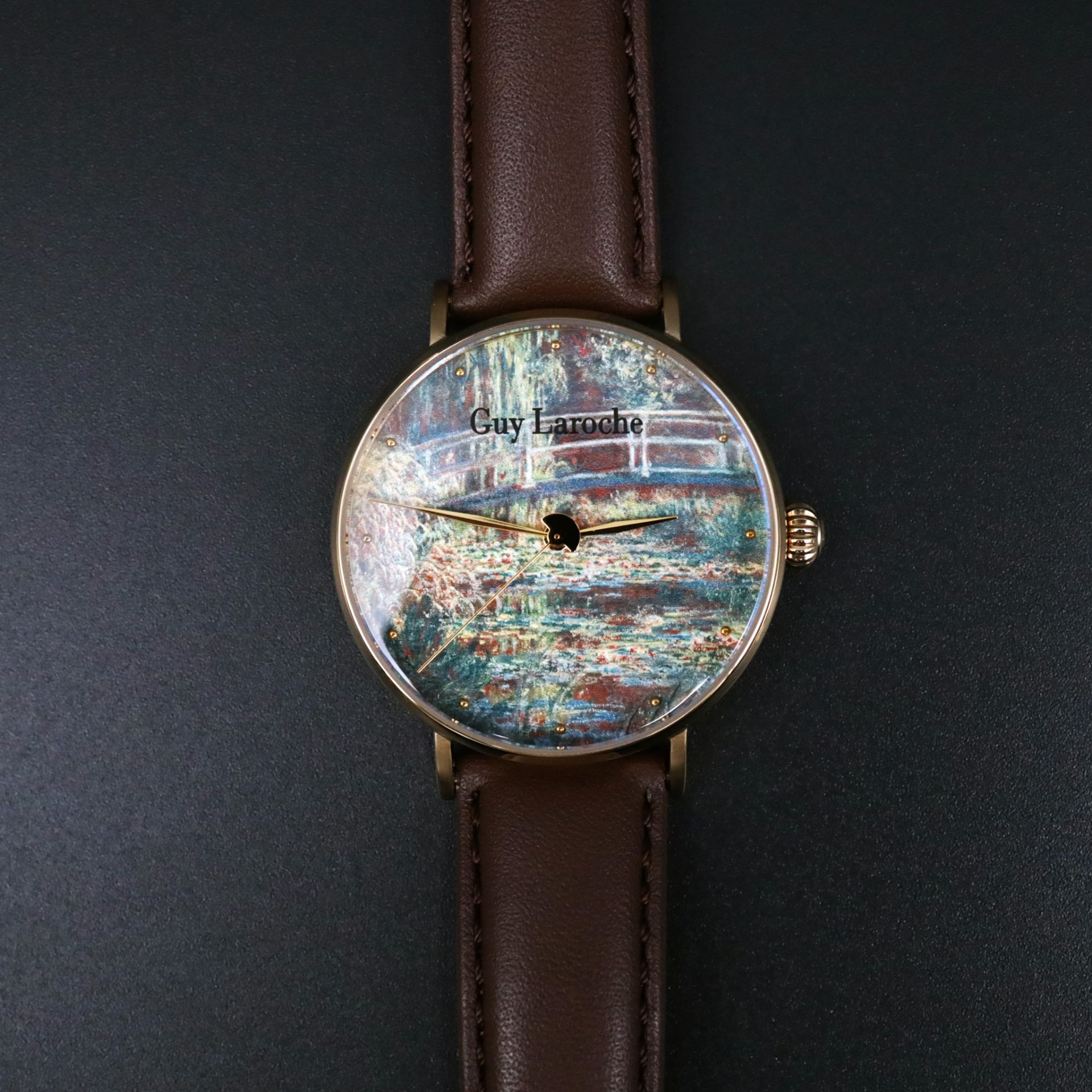 原廠公司貨 瑞士機芯、30米防水 3D立體印刷世界名畫 畫作:睡蓮-粉紅色之和諧 不鏽鋼錶殼、義大利真皮錶帶 料號:GA1001WPPH-03 姬龍雪品牌工藝,多元百變的豐富性格 來自法國的頂級時尚品牌姬龍雪,起源於1956年的法國巴黎,見證了巴黎時尚的鼎盛時期,憑藉其大膽的設計,在時尚界佔據相當重要的地位,也擠身為極具影響力傳奇品牌。 姬龍雪腕錶基於法國浪漫、典雅與隨性不羈的文化,讓其簡潔設計風格自成一派。設計上注入許多獨立的時尚元素,憑藉時尚的角度演繹現代人不同個性,添入簡約、新穎且跳躍式的設計理念,透過舒適的線條,塑造出多元與百變的腕錶風格。 國際名畫戴著走,刻刻增添藝術氣息 姬龍雪尊重藝術,揉和了時計與藝術的嶄新概念,把名畫與手錶結合為一體,推出特別的”Art Watch”藝術系列的腕錶。腕錶系列靈感來自法國知名的大師級畫家,透過與世界名畫的結合,把藝術帶進生活裡,成為展現氣質品味的飾品。