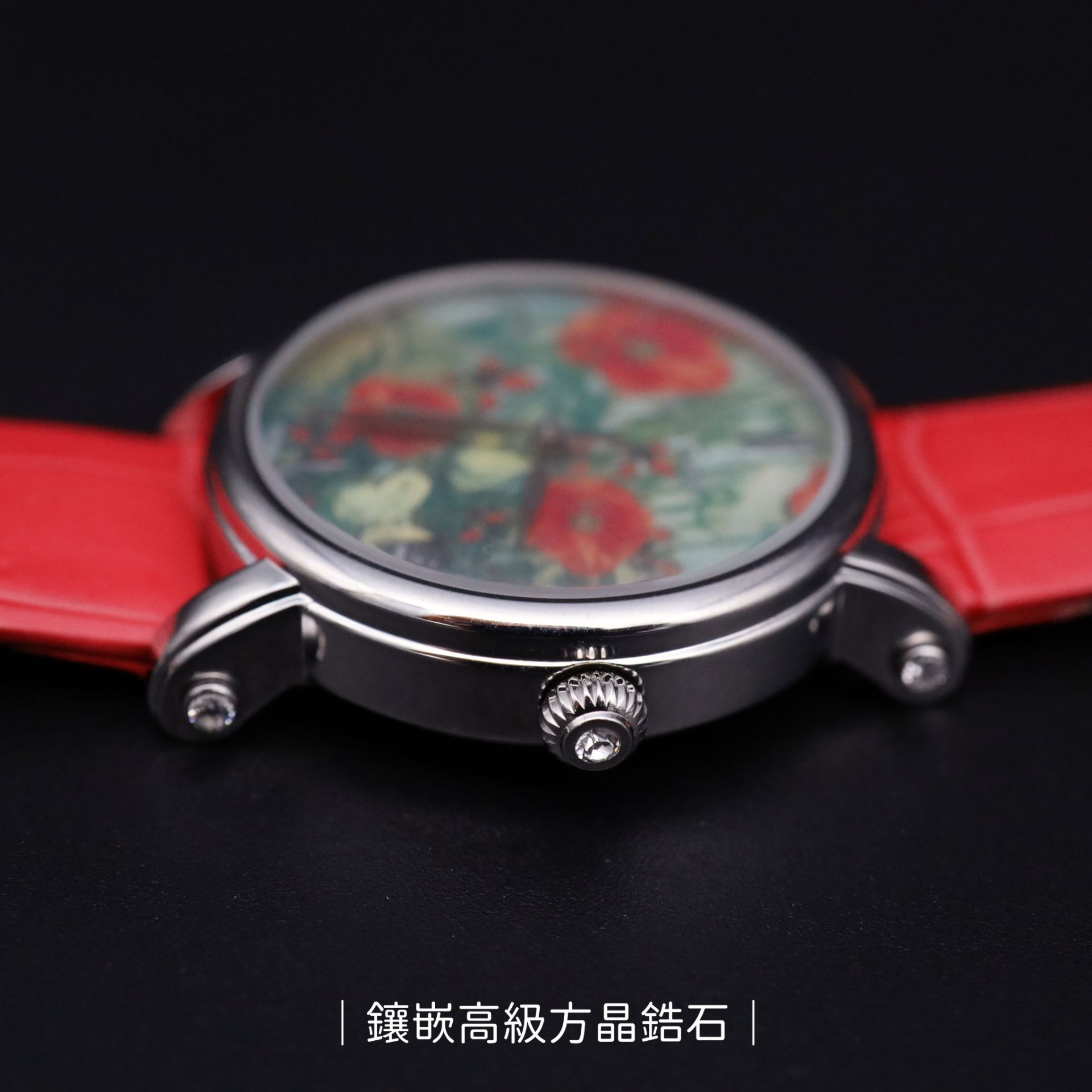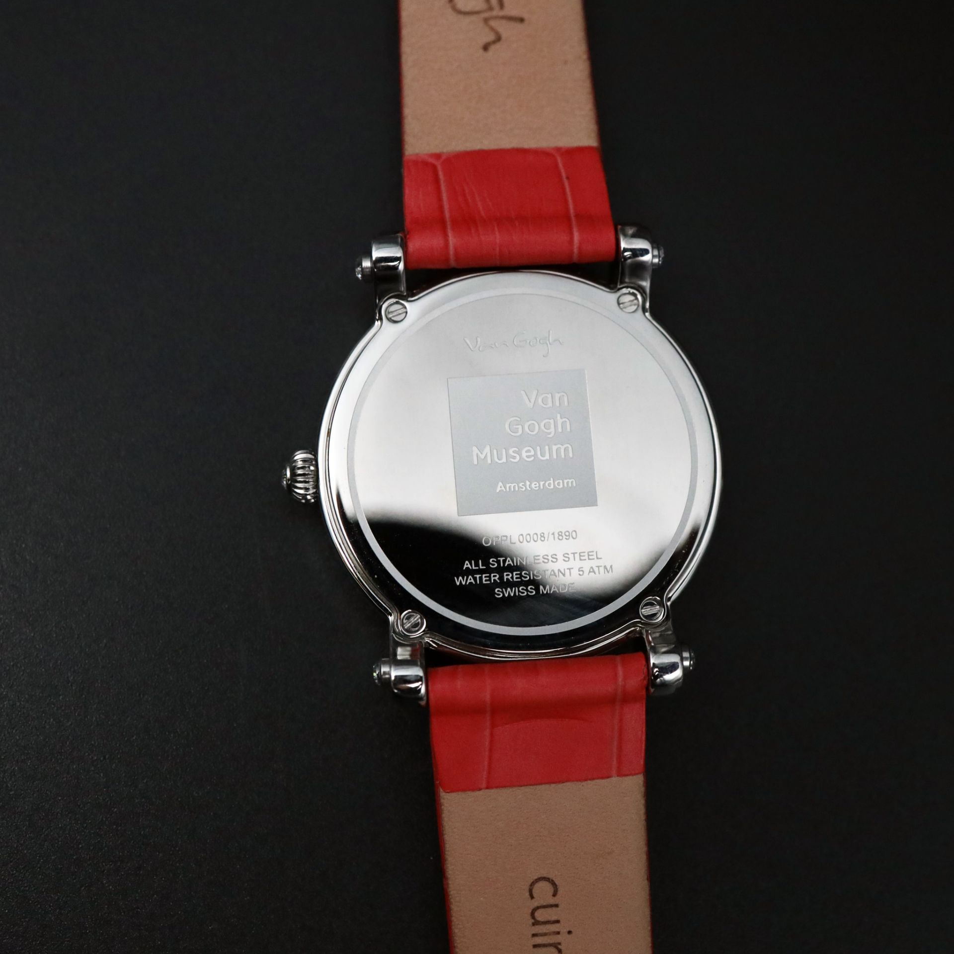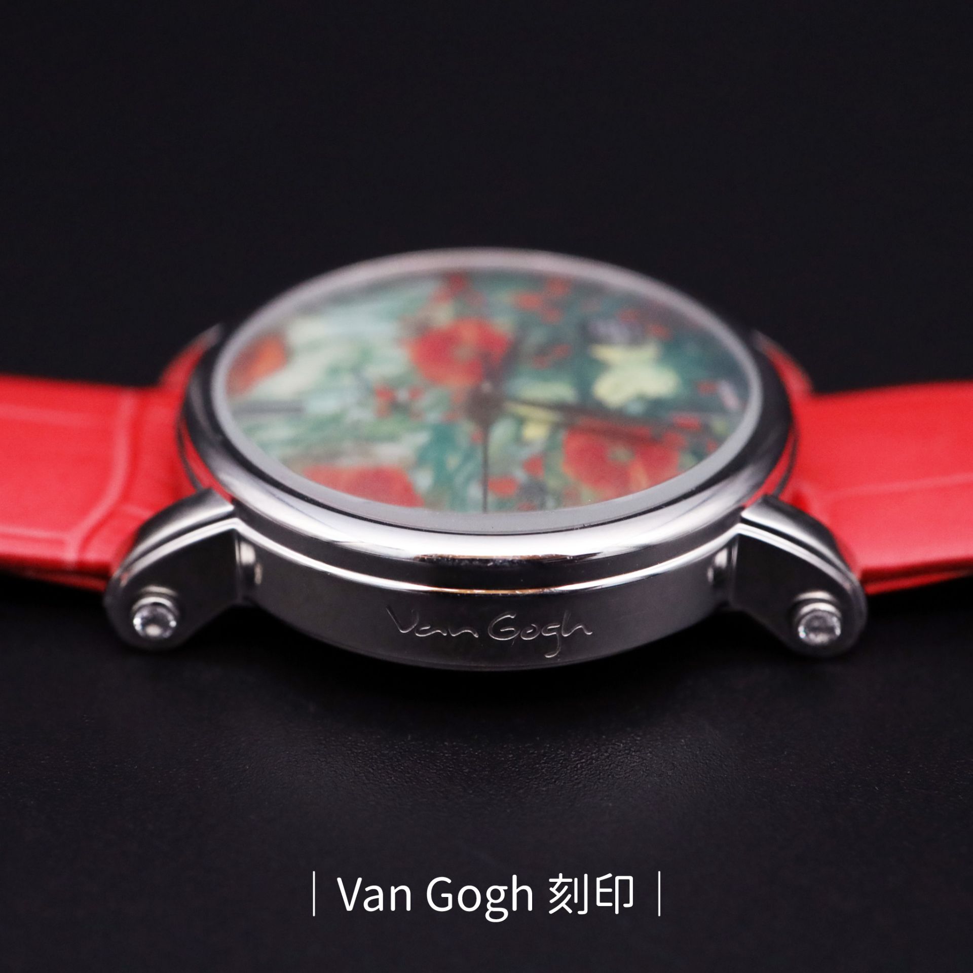 原廠公司貨 3D立體油畫錶盤 4顆高級方晶鋯石 梵谷博物館刻印底蓋 不鏽鋼錶殼、真皮錶帶 料號:Lady 15 荷蘭梵谷博物館授權梵谷瑞士腕錶 巴塞爾備受注目 荷蘭梵谷博物館於1963年開始建造,以本國著名畫家梵谷命名,館內珍藏有大量的梵谷作品包括油畫、素描以及信件等,並設有圖書館,是研究梵谷的重鎮。當梵谷博物館於1973 年開幕之後,迅速成為國際知名的博物館以及阿姆斯特丹最受歡迎景點之一,是世界領導文化的典範。 梵谷博物館以Van Gogh命名發展銷售全球的授權品牌,以梵谷倡導自由,熱情的新生活態度,為消費者帶來一種陽光,自然,感性的生活理念,是對梵谷精神,梵谷文化的弘揚,饒富意義。 我們有幸與梵谷博物館合作,首於2013年推出一系列以梵谷名畫作為創作元素的手錶的160周歲之限量手錶,隨此之後,我們更進一步將梵谷的故事傳播開去,因而創作梵高油畫手錶系列(入門經典),將藝術氣息融入日常生活。無論是珍貴的限量版自動機械腕錶或是梵谷的經典入門系列,在在都讓熱愛梵谷名畫的人能真正“畫不離身”,時刻感受梵谷的氣息。