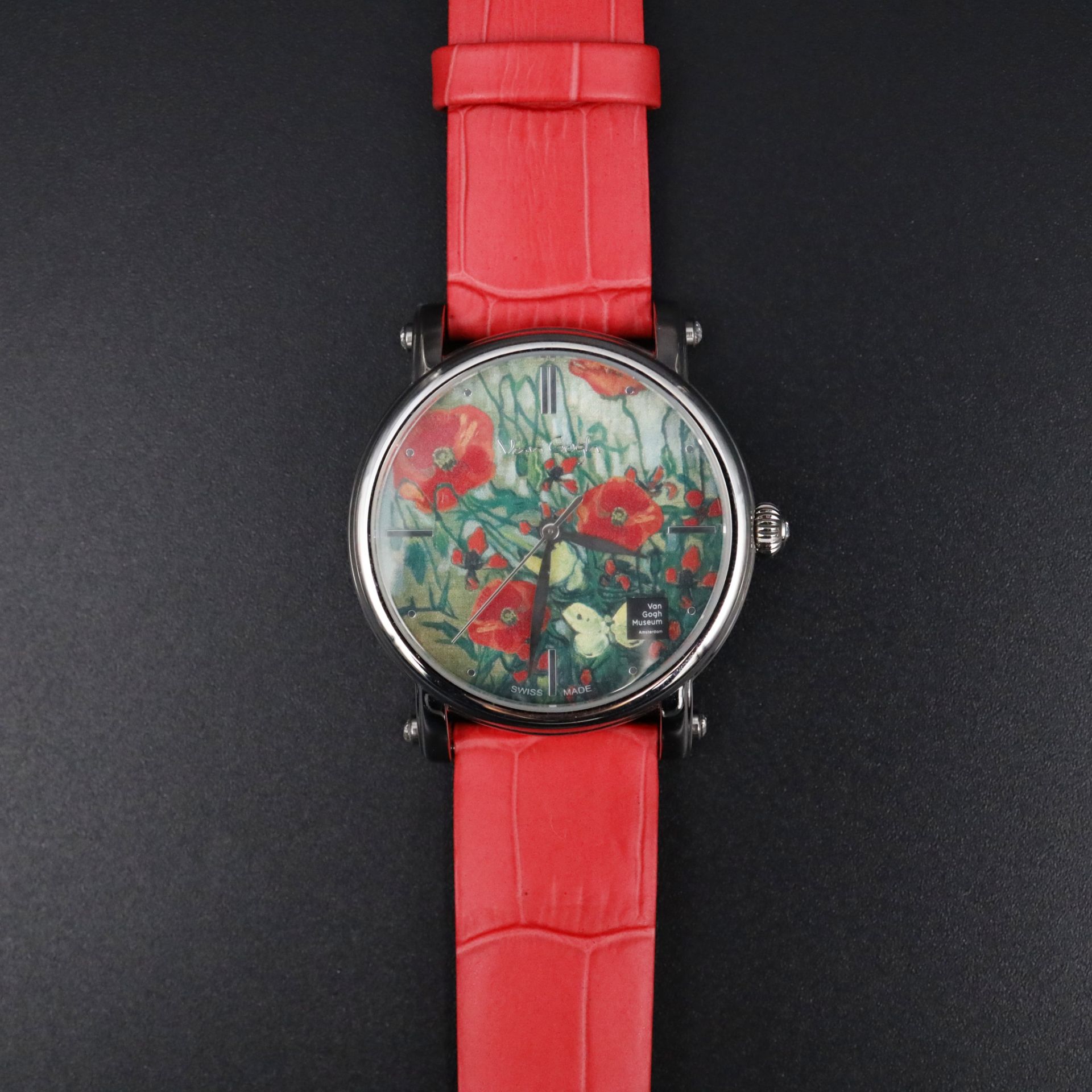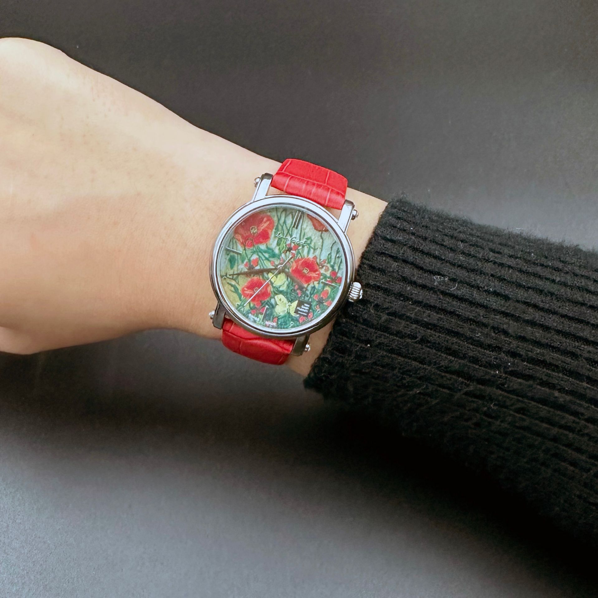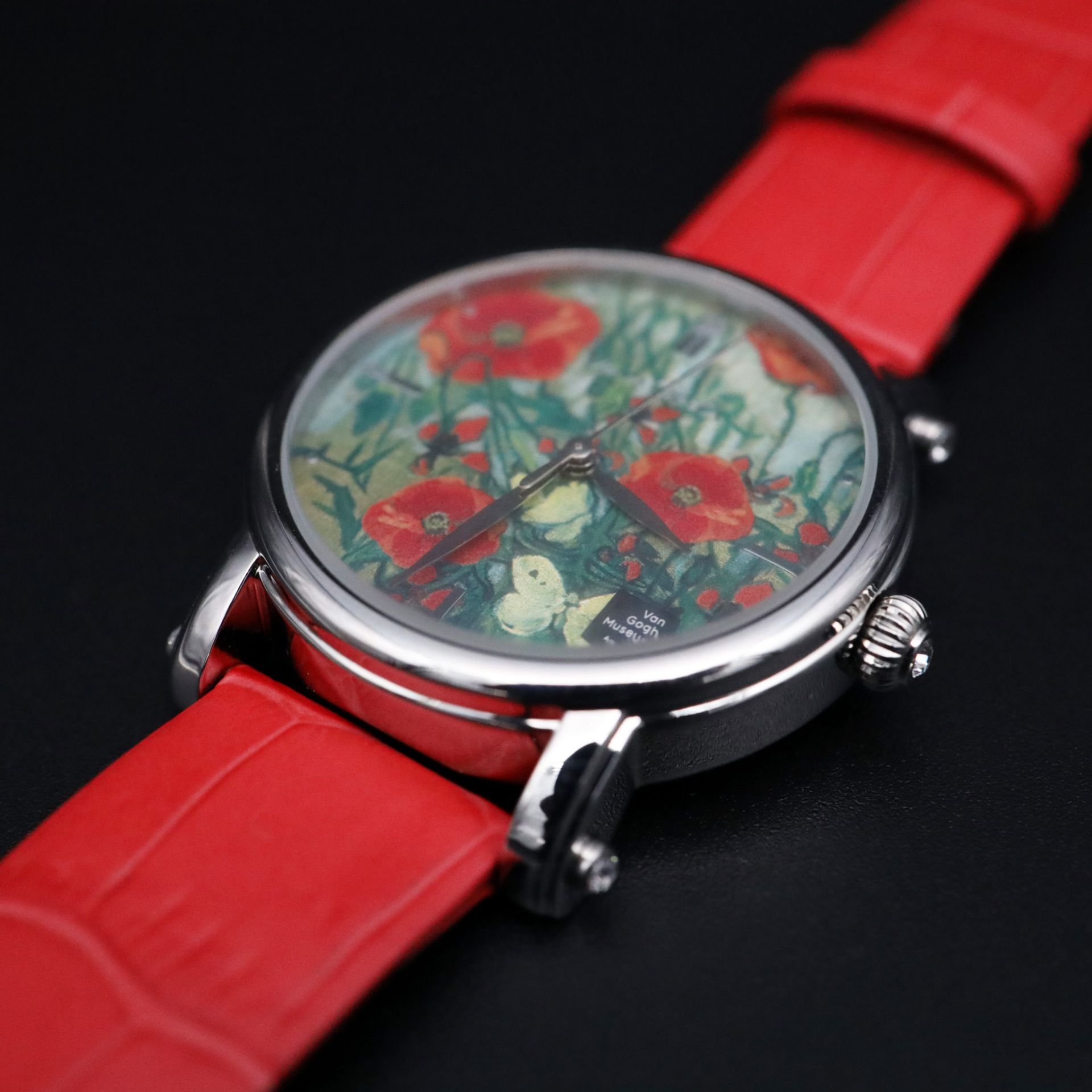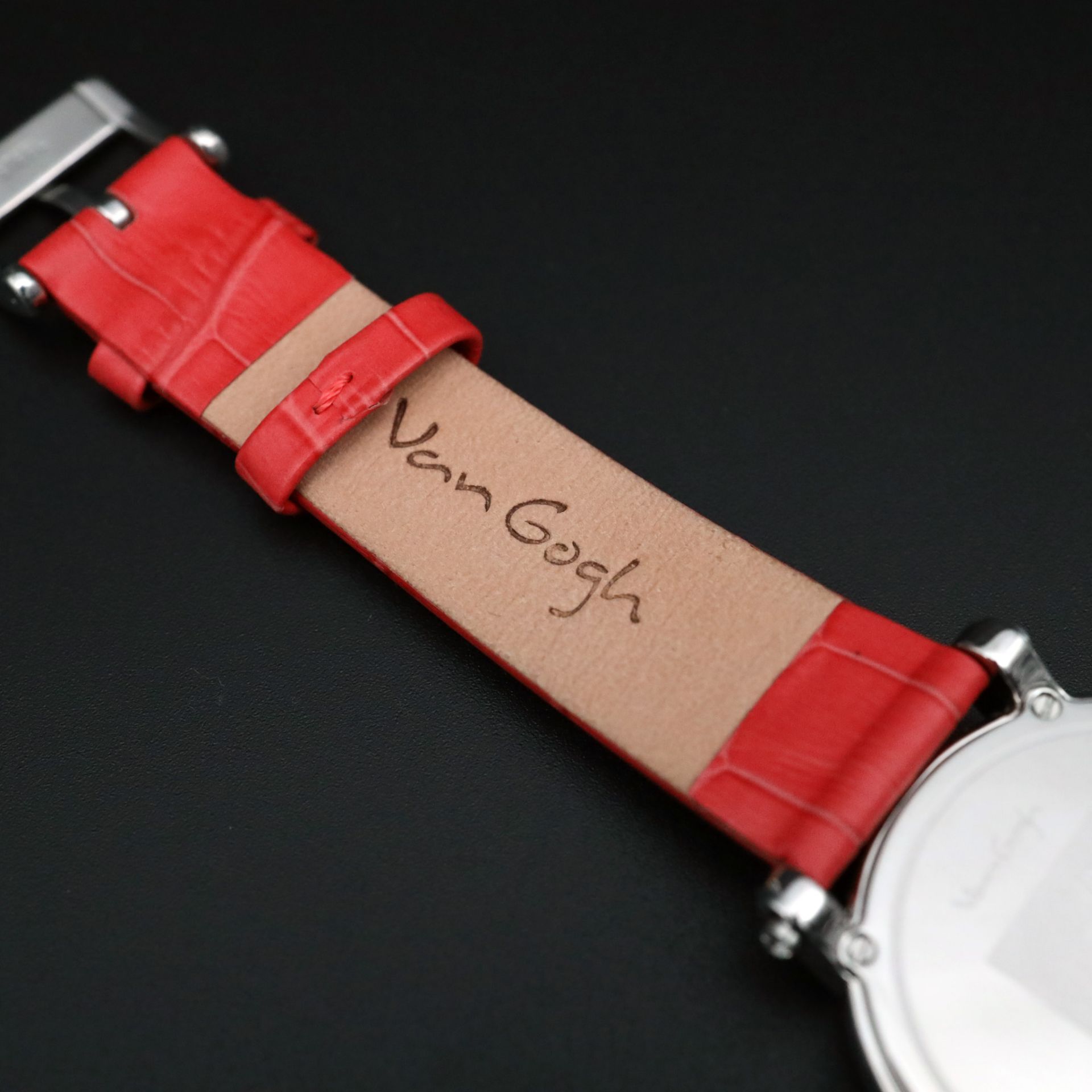 原廠公司貨 3D立體油畫錶盤 4顆高級方晶鋯石 梵谷博物館刻印底蓋 不鏽鋼錶殼、真皮錶帶 料號:Lady 15 荷蘭梵谷博物館授權梵谷瑞士腕錶 巴塞爾備受注目 荷蘭梵谷博物館於1963年開始建造,以本國著名畫家梵谷命名,館內珍藏有大量的梵谷作品包括油畫、素描以及信件等,並設有圖書館,是研究梵谷的重鎮。當梵谷博物館於1973 年開幕之後,迅速成為國際知名的博物館以及阿姆斯特丹最受歡迎景點之一,是世界領導文化的典範。 梵谷博物館以Van Gogh命名發展銷售全球的授權品牌,以梵谷倡導自由,熱情的新生活態度,為消費者帶來一種陽光,自然,感性的生活理念,是對梵谷精神,梵谷文化的弘揚,饒富意義。 我們有幸與梵谷博物館合作,首於2013年推出一系列以梵谷名畫作為創作元素的手錶的160周歲之限量手錶,隨此之後,我們更進一步將梵谷的故事傳播開去,因而創作梵高油畫手錶系列(入門經典),將藝術氣息融入日常生活。無論是珍貴的限量版自動機械腕錶或是梵谷的經典入門系列,在在都讓熱愛梵谷名畫的人能真正“畫不離身”,時刻感受梵谷的氣息。