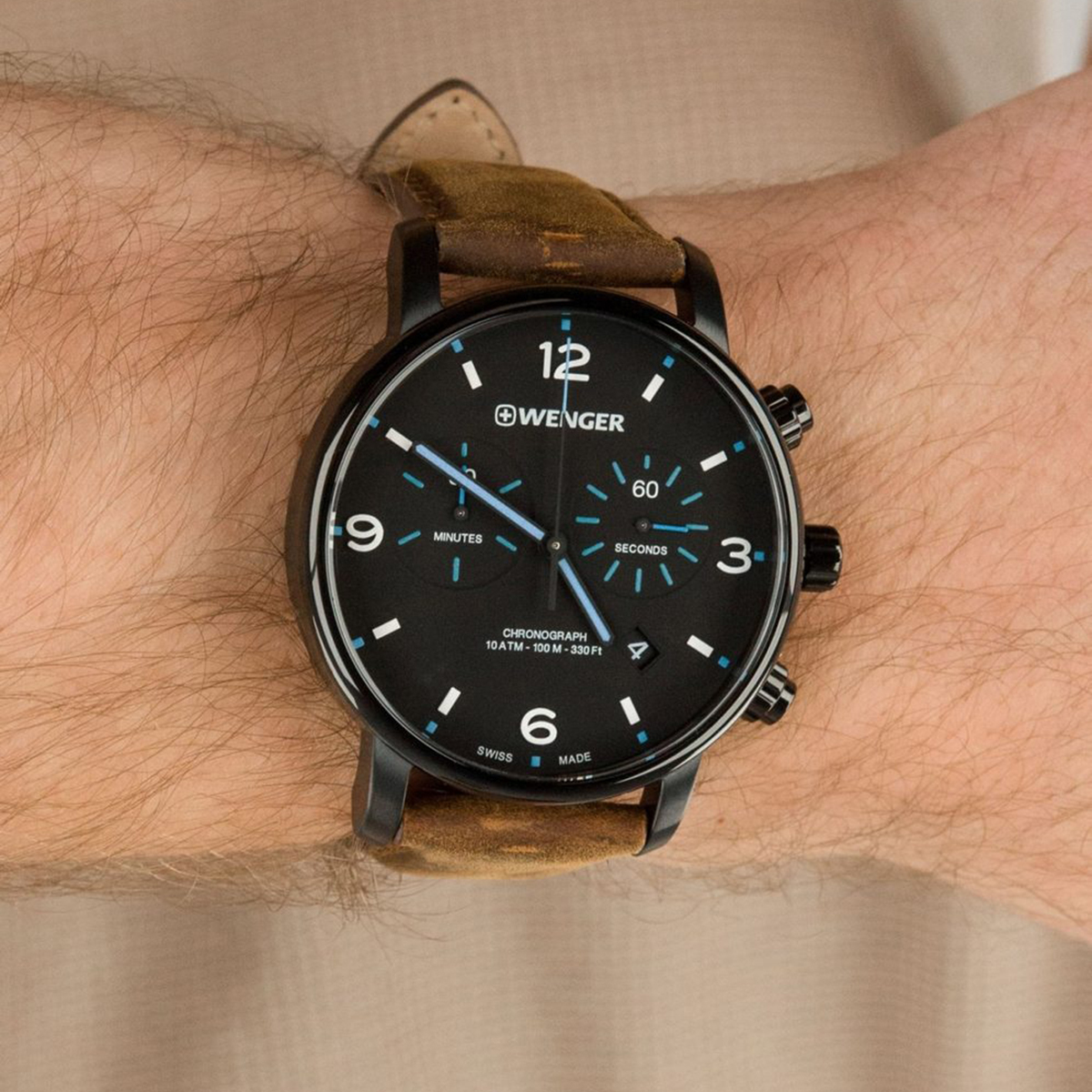 WENGER成立於西元1893年瑞士Jura地區,至今已有124年歷史,為瑞士悠久歷史品牌之一,始終堅持於品質、工藝與耐用度,早期以嚴謹標準製作軍刀聞名,並於全世界打響名號。瑞士官方軍隊曾將WENGER軍刀列為標準配備。WENGER的計時器都是可靠,具有實用功能和精心設計的,WENGER捕捉到時代的精神。因此以合理的價格提供愛好瑞士品牌手錶的人們所設計。 2017全新設計的都會系列,向早期的Commando系列致敬,進化成更適合現代都會的面板設計,部分表款面板採用太陽紋設計更添質感,更提供多款錶帶材質提供現代都會人不同生活型態的多樣選擇。