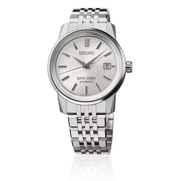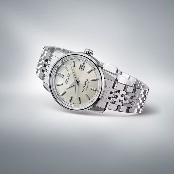 1965年,在初代King Seiko問世的 4 年後,被稱為King Seiko第二代的「KSK」誕生。 這是該系列中第一款具有鮮明的稜角分明外觀特色的手錶,King Seiko因此而聞名。 與第一代King Seiko相較,KSK也因為具有防水及停秒功能,因而在實用性及功能性方面有極為顯著的進步。 SJE089J1同樣也是搭載簡約的面盤設計,與六點鐘方向的King Seiko logo相得益彰, 面盤採用了全新的太陽放射紋飾面,質感和光澤更加低調與精緻。