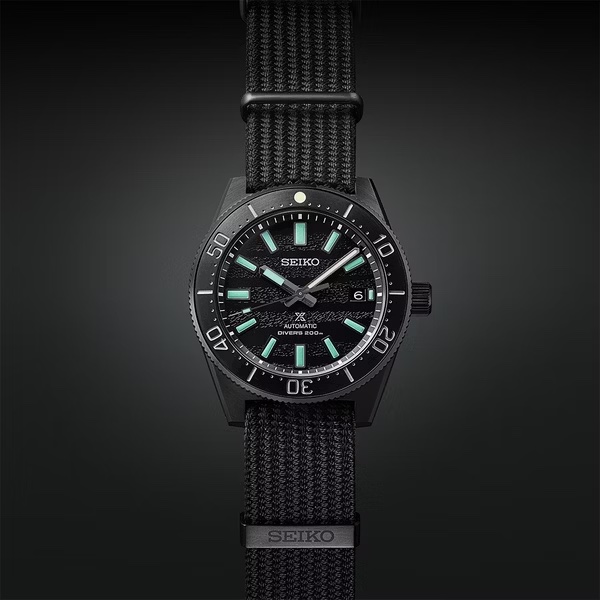 【The Black Series黑潮系列 1965年潛水錶現代詮譯版】 設計靈感來自於夜視鏡下的世界,追求在黑暗中的視讀性。 以1965年第一只日本國產機械潛水錶的殼型加以現代化詮釋, 包含錶殼側面與錶圈的外圍以超鏡面(ZARATSU)研磨,展現高級的光澤感。 時標與指針皆採用新開發的Green Lumibrite Pro 塗料, 在黑暗中依然可清楚讀時。