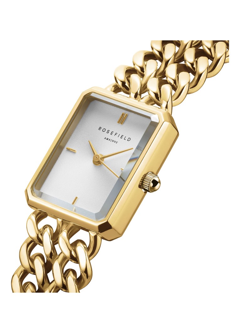 Rosefield The Octagon 全新配飾設計的時尚逆襲,完美結合女性柔美必備的時髦八角與復古酒桶腕錶造型。纖細小巧的 22mm 的錶徑搭配 5-LINK 的不銹鋼目錶帶,復刻 1920S 美學的時光縮影。3D切割的玻璃鏡面設計,光線投射下擁有驚豔的視覺體驗,兼具知性與都會流行的超然新作。