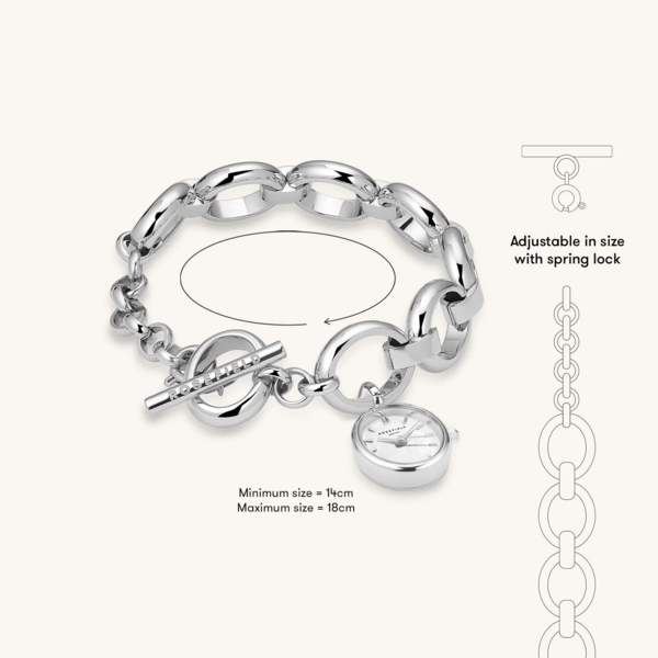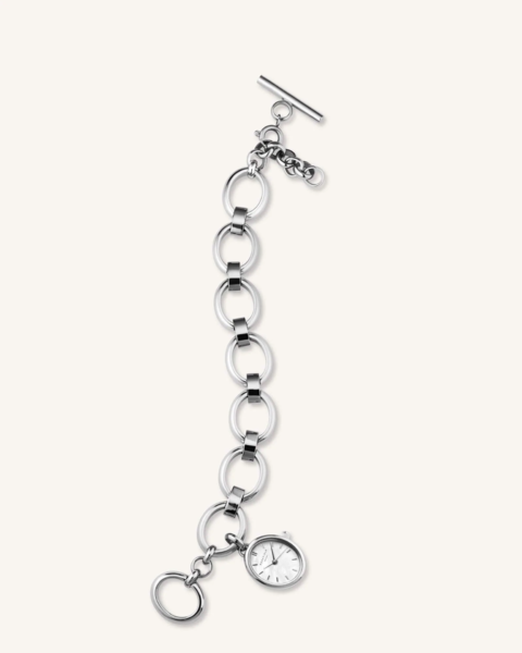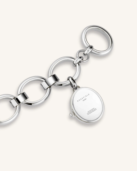 Charm Chain,蛋型精緻錶盤搭配時尚的鐲鍊帶設計;更輕靈小巧的錶徑,鐲鍊採用 Rosefield 品牌漏刻的 T 型錶扣閉合,可鎖定在 O 形環結,充滿優雅細節的復古輪廓。腕錶亦是珠寶,將女性柔美與經典永恆的奢華概念,注入在阿姆斯特丹時髦女性美學設計之中,無論各種場合配戴皆可完美呈現。