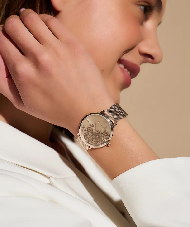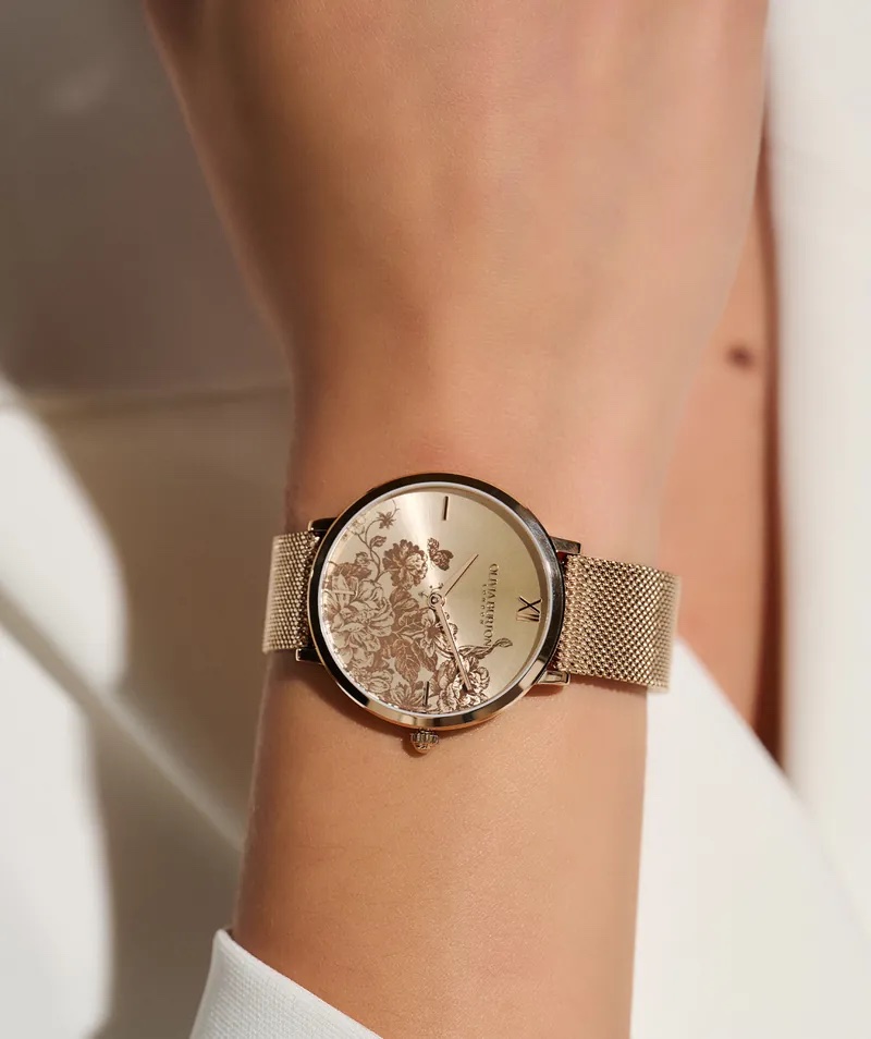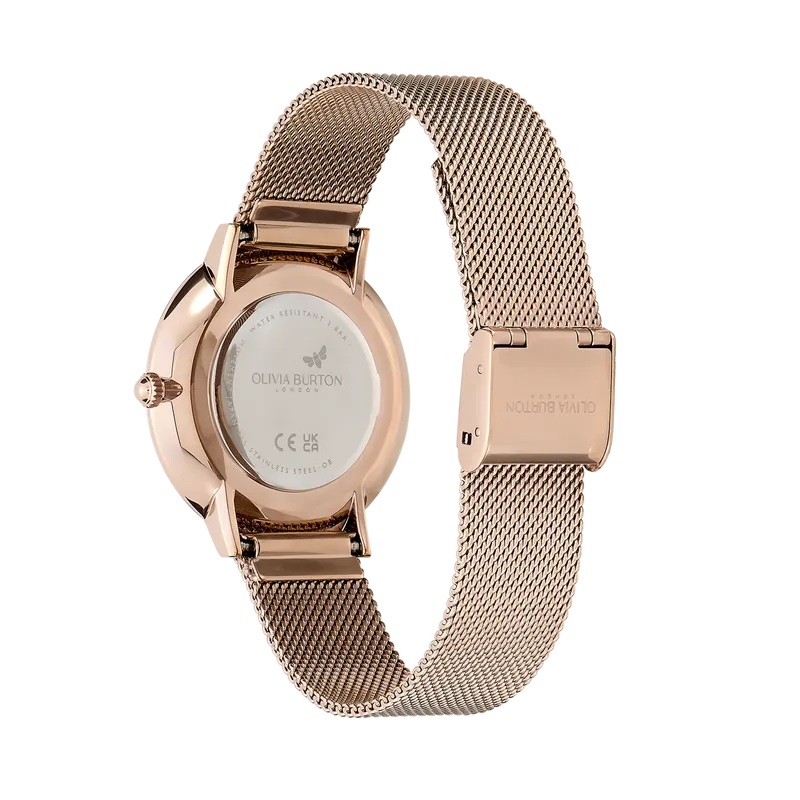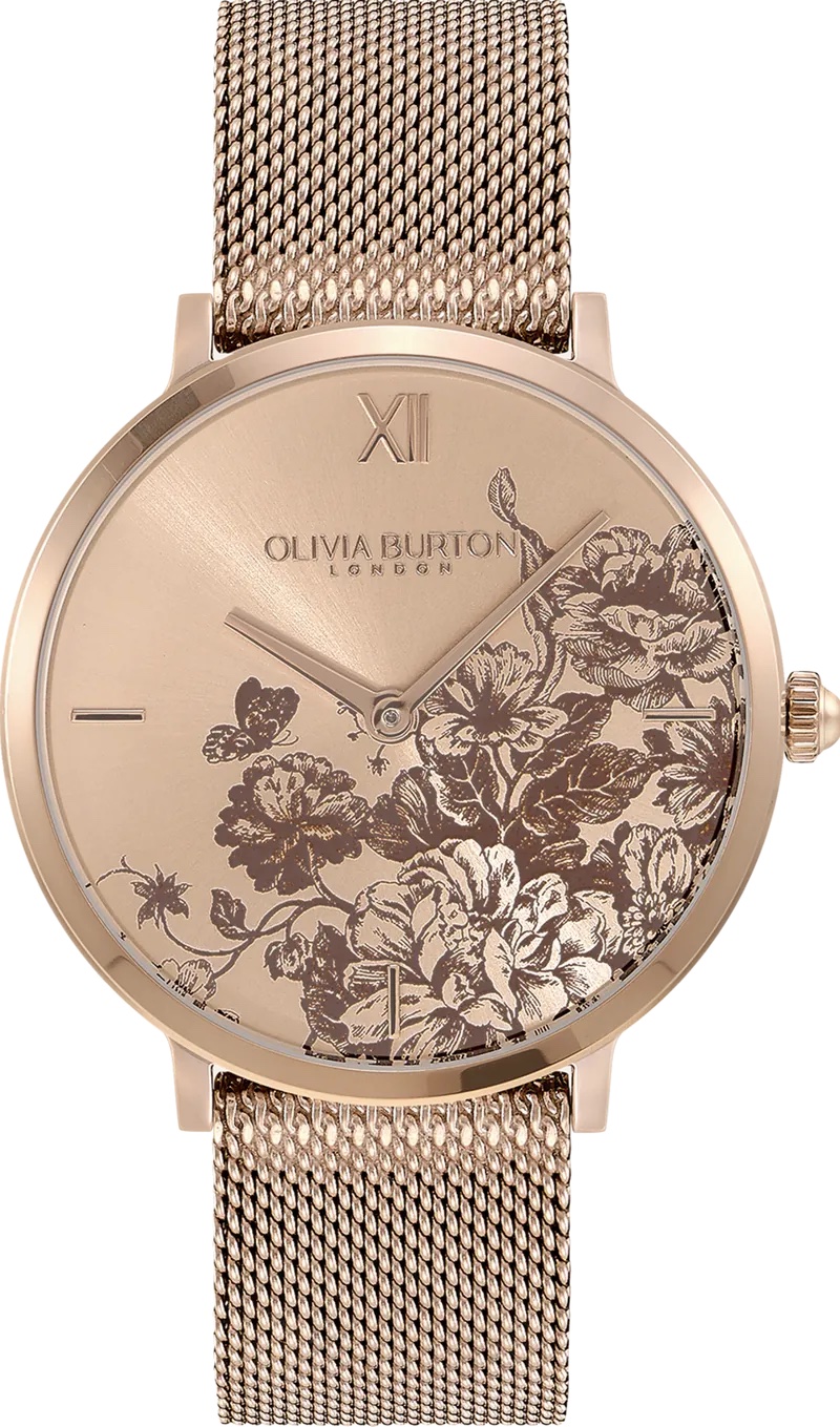 【高雄時光鐘錶】Olivia Burton 24000116 Signature 手繪花卉 玫瑰金 不鏽鋼 米蘭錶帶女錶
