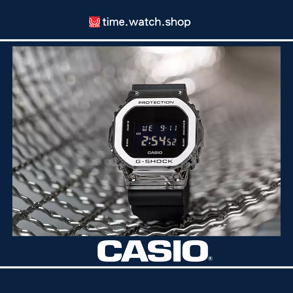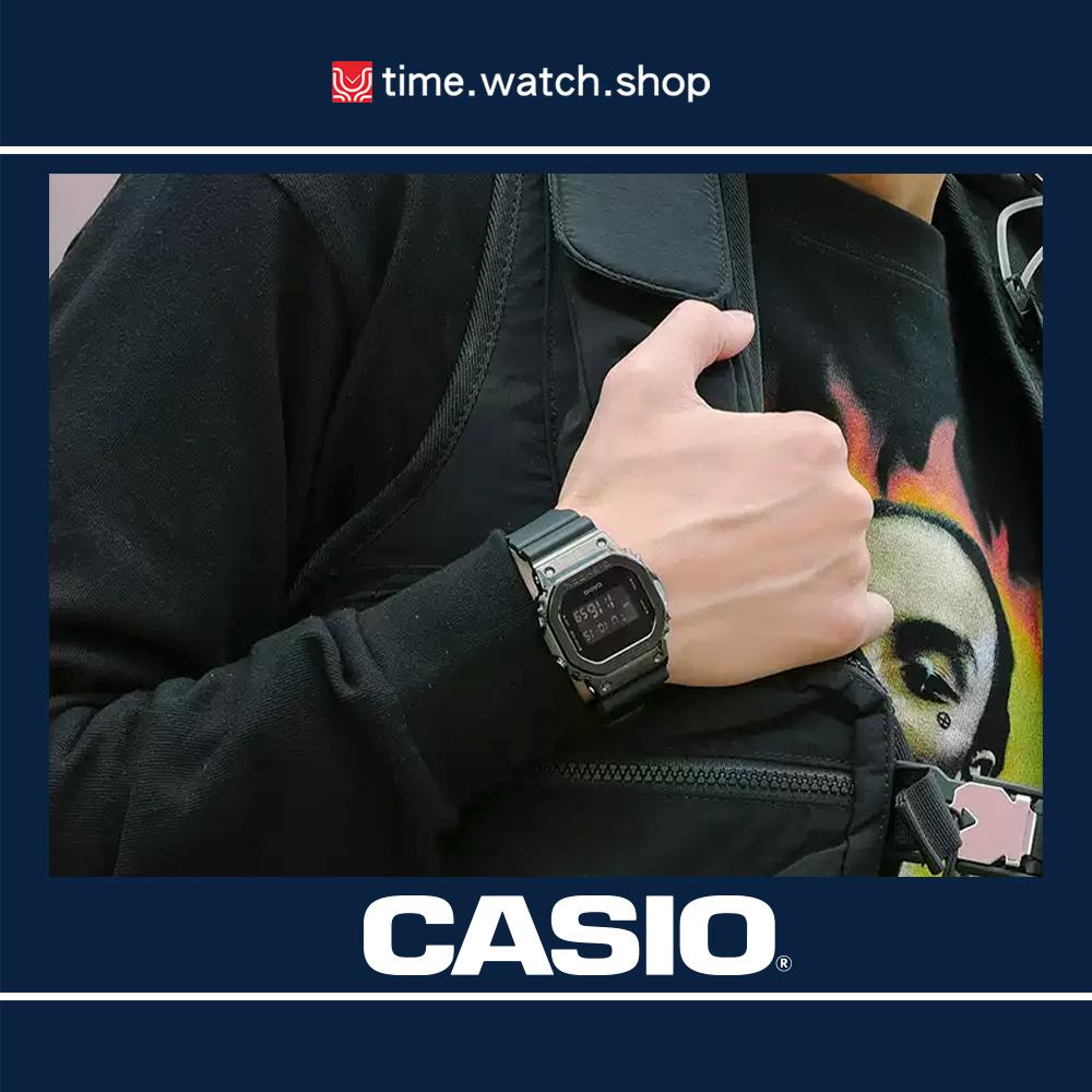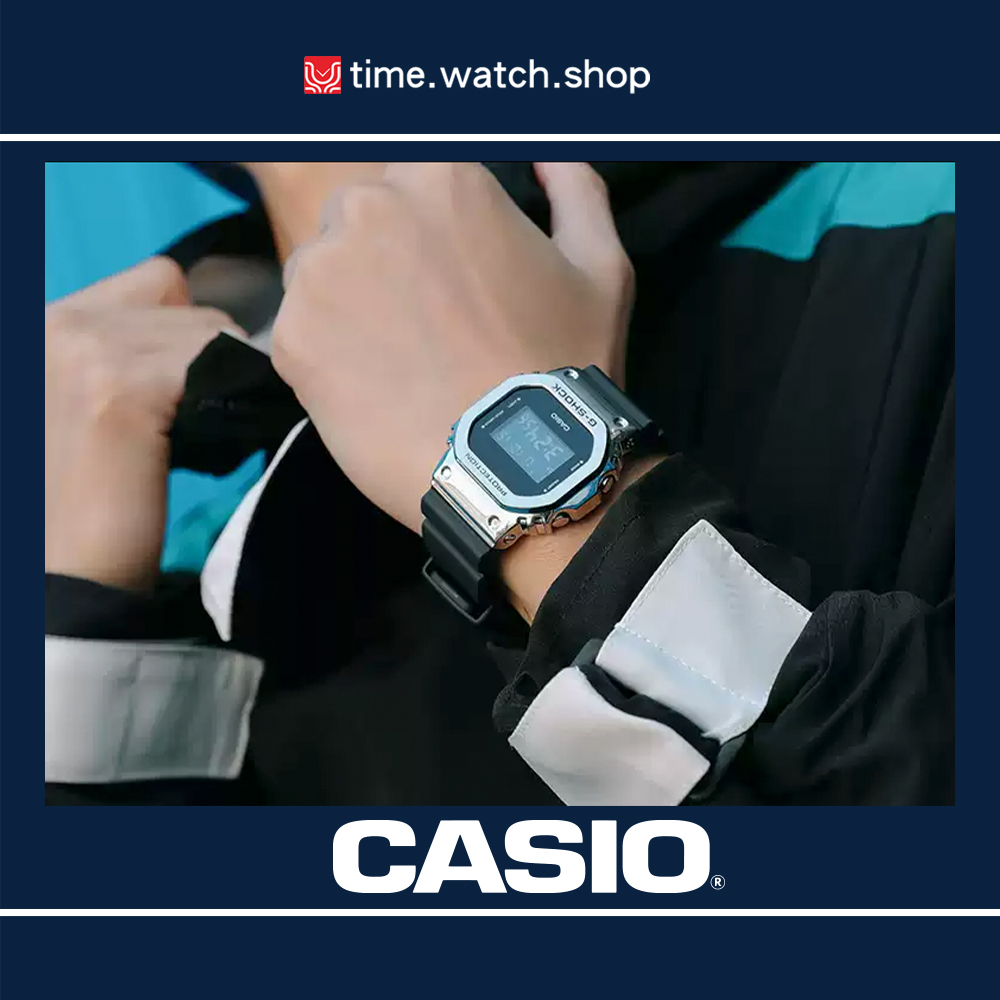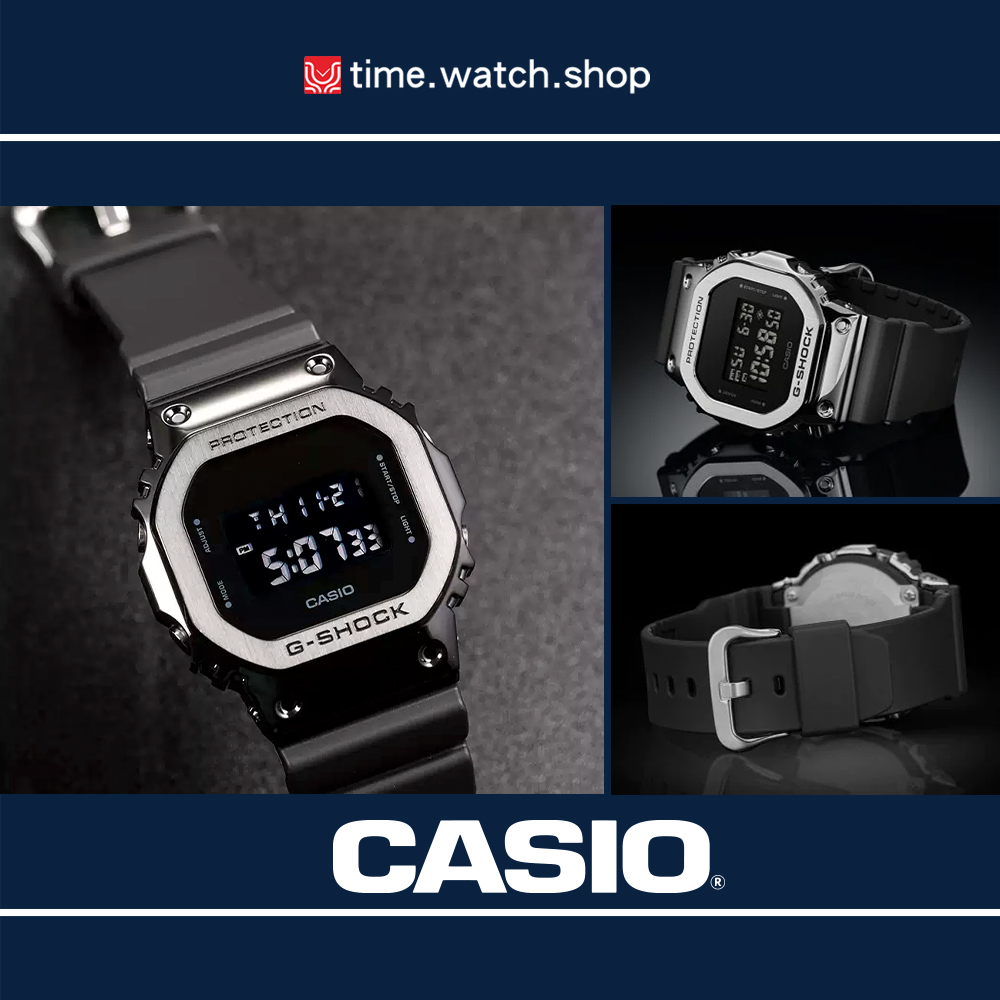 G-SHOCK 超人氣DW-5600系列 金屬質感的不鏽鋼錶殼 輕巧又貼合手腕的舒適樹脂錶帶 G-SHOCK經典錶款5600系列再推新款式GM-5600系列, 維持經典的方型錶殼,換上金屬質感的不鏽鋼錶殼, 搭配輕巧又貼合手腕的舒適樹脂錶帶,黑色樹脂錶帶可搭配銀、黑兩色的錶殼, 而墨綠色錶帶搭配黑色錶殼外,錶盤特別設計點陣迷彩紋路, 三款皆搭配黑色反轉液晶螢幕顯示,營造出G-SHOCK一貫時尚的外觀。 維持既有的耐衝擊構造與防水200米外,搭載1/100秒碼表、倒數計時、鬧鈴、 全自動月曆與EL冷光照明…等多元機能。