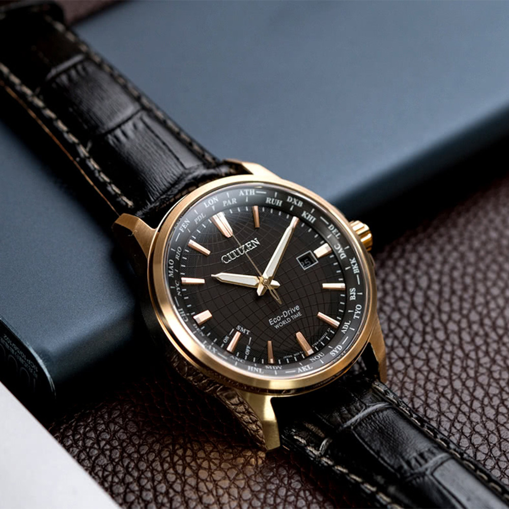 Eco-Drive 光動能是CITIZEN高科技的代表作 引以為傲的製錶技術,更是都會時尚的首選之一 運用任何光源推動腕錶運行,毋須更換電池 萬年曆/日期顯示/JIS1型防磁/26個城市時間/夏令時間 不鏽鋼錶殼、小牛皮錶帶,搭載藍寶石水晶鏡面 日系領導品牌,實用兼具時尚的設計,卓越優質的品味。